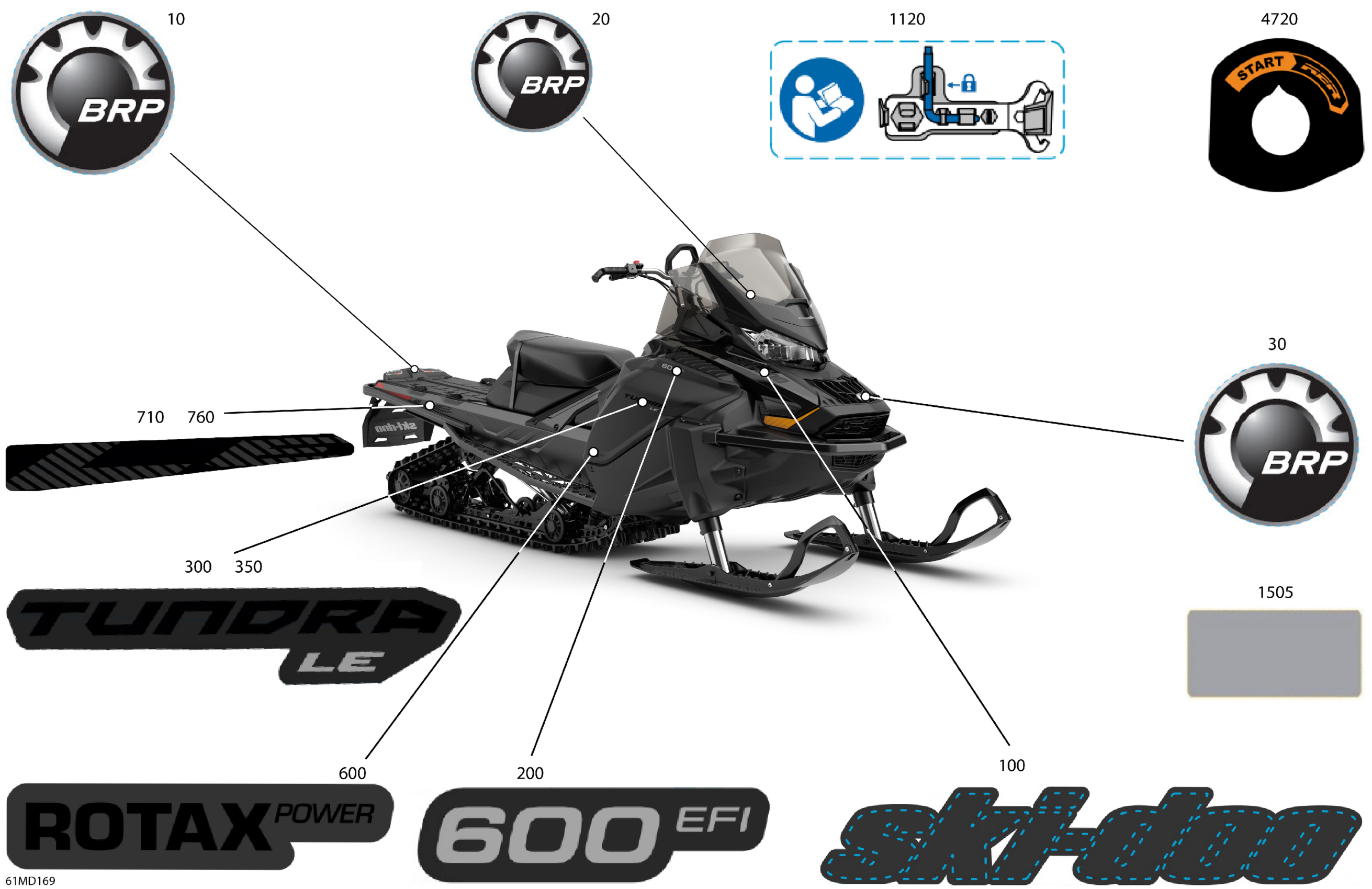 Ski-Doo Europe - TUNDRA 600 EFI - LE - GDRB - Deep Black - 154X16X1.5CH Track, 2024 07- Body - Decals Diagram