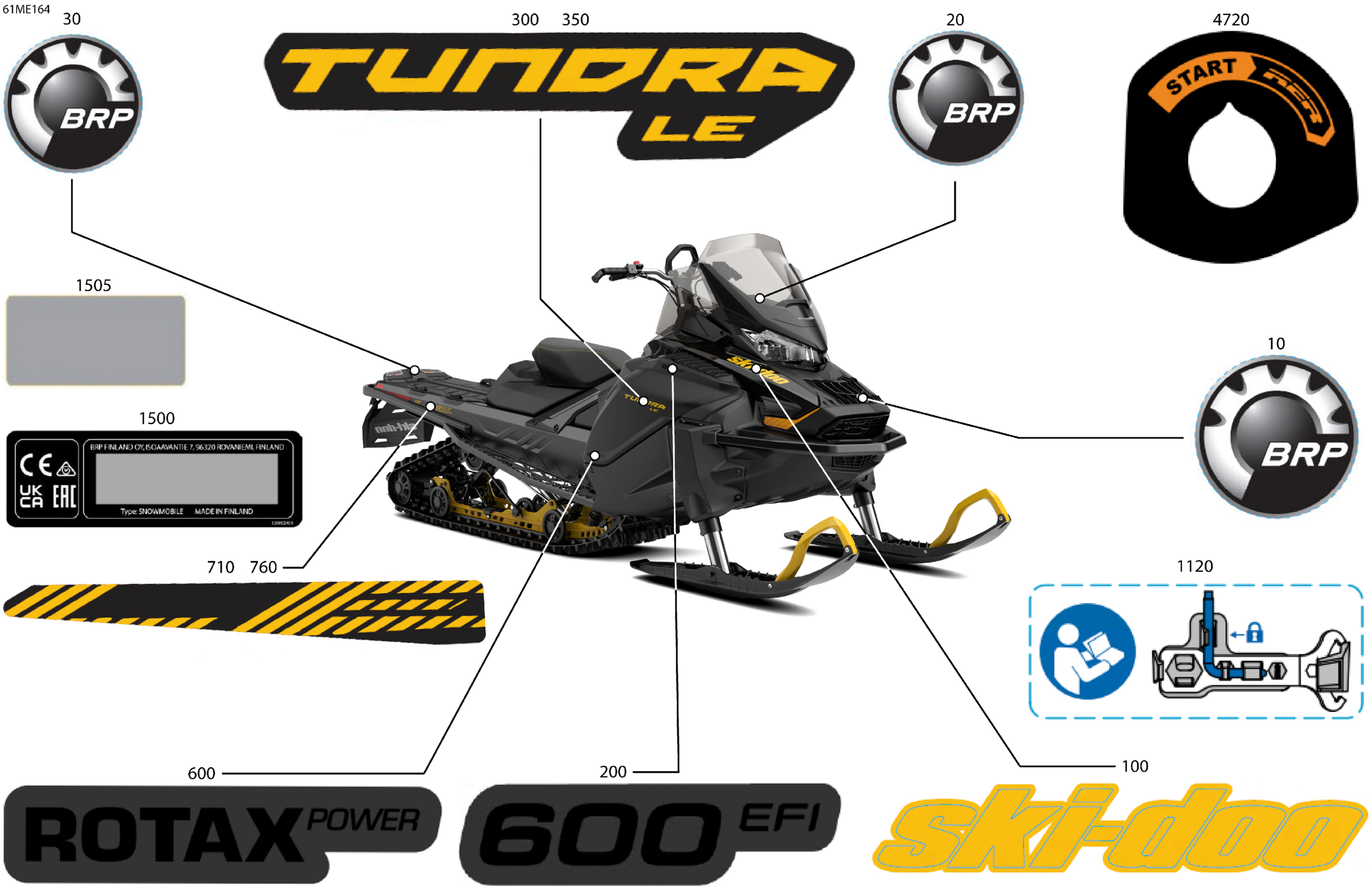 Ski-Doo Europe - TUNDRA - 600 EFI - LE - GDSA - Deep Black - 154X16X1.5CH Track - 2025 07- Body - Decals Diagram