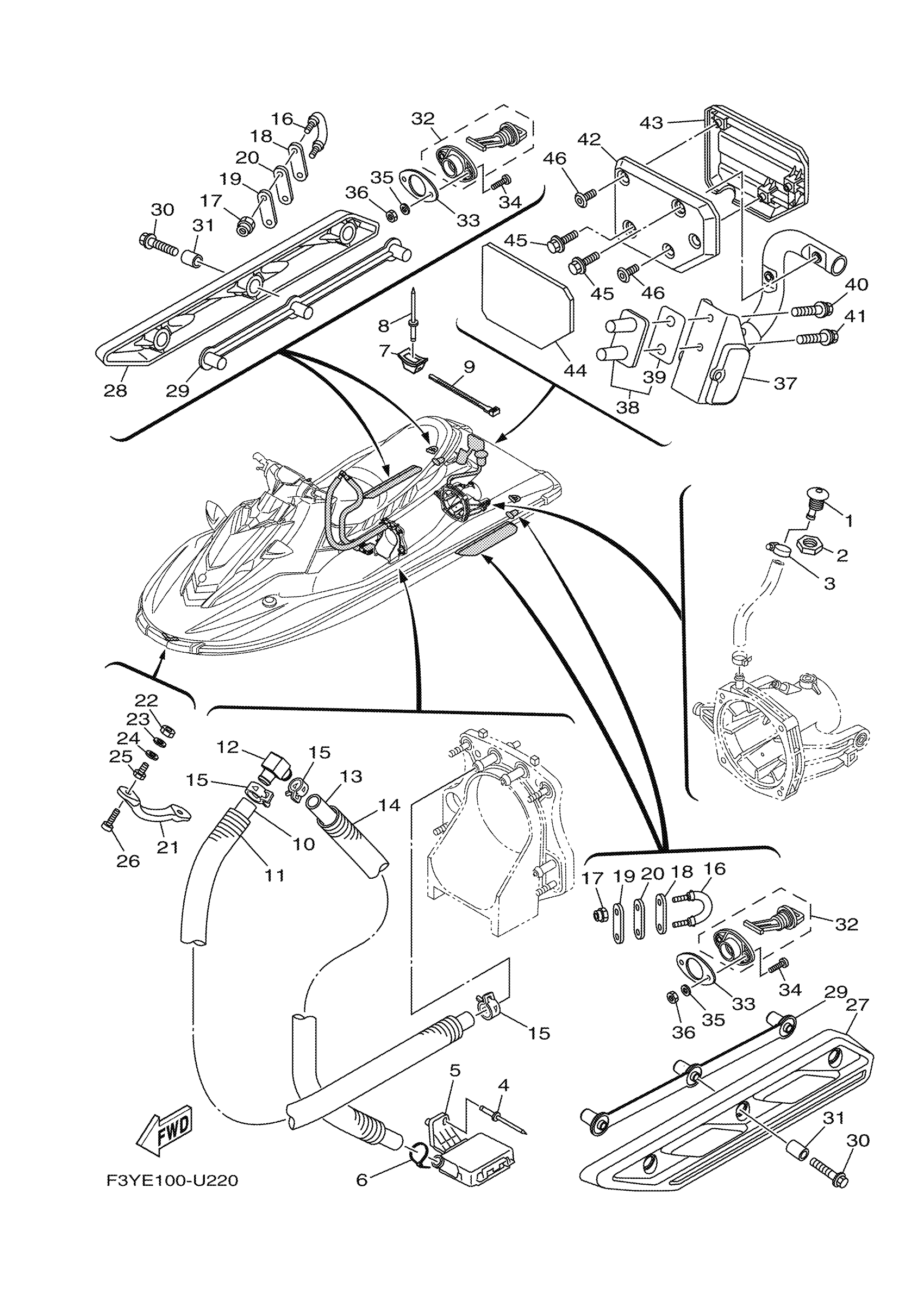 Yamaha EX1050BX (EX SPORT) F3YR 2022 HULL & DECK Diagram