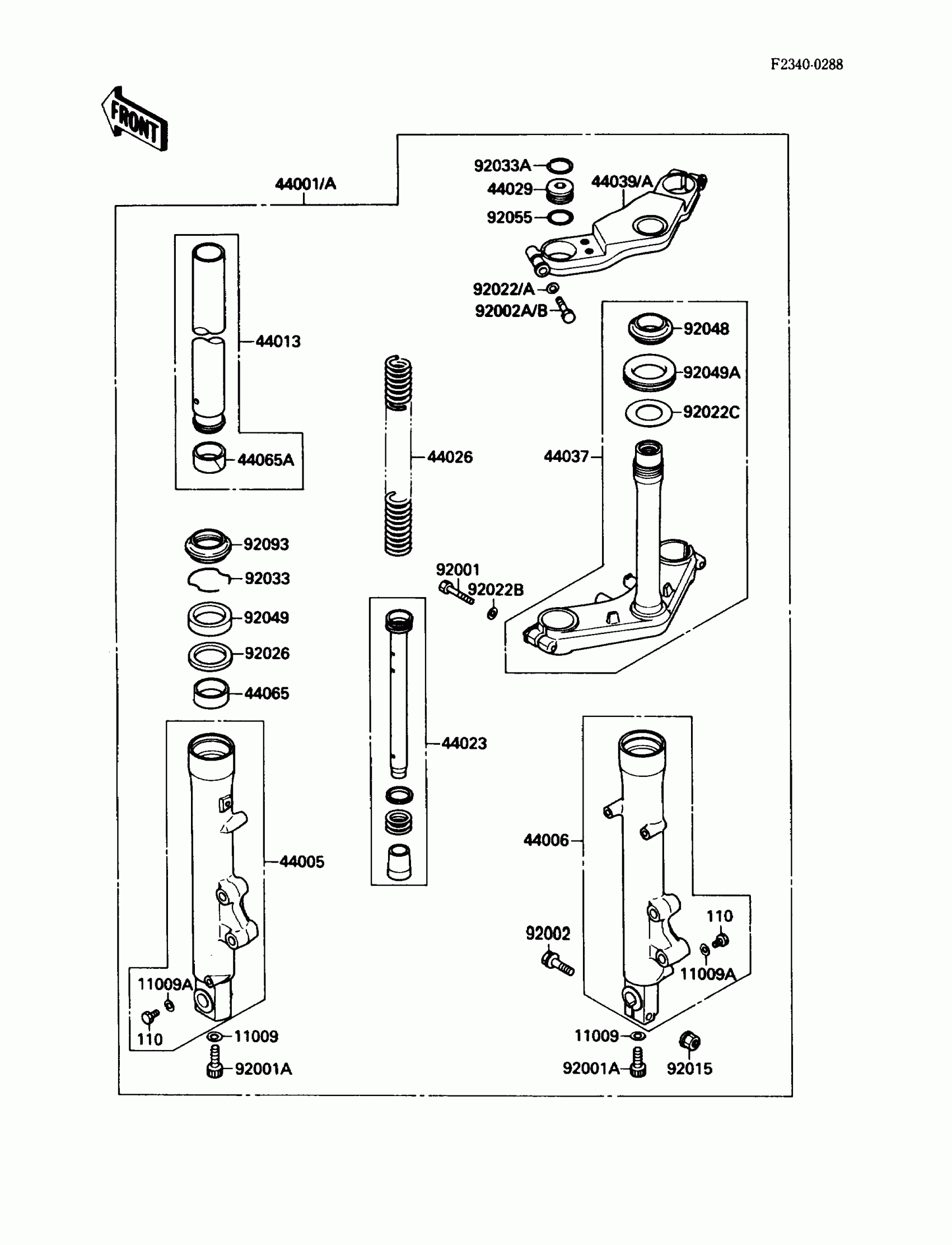 Kawasaki EX500 Front Fork Diagram