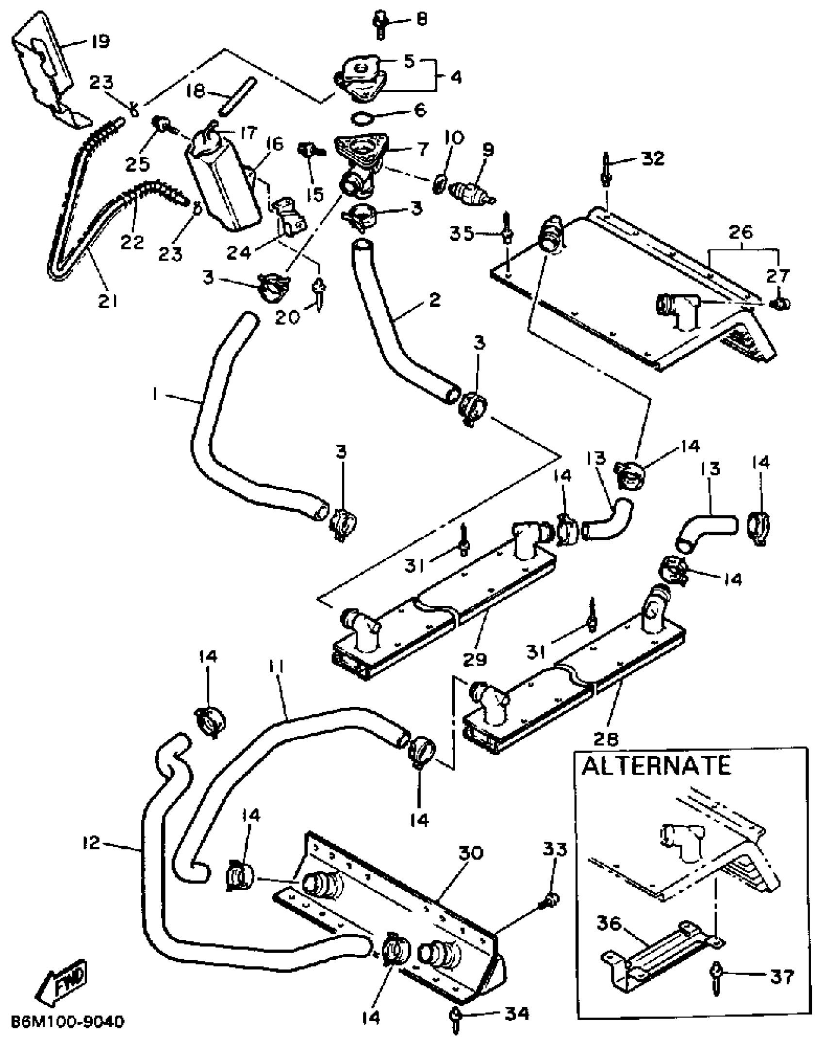 Yamaha EX570EN (EXCITER DELUXE (ELEC START)) 1989 RADIATOR - HOSE Diagram