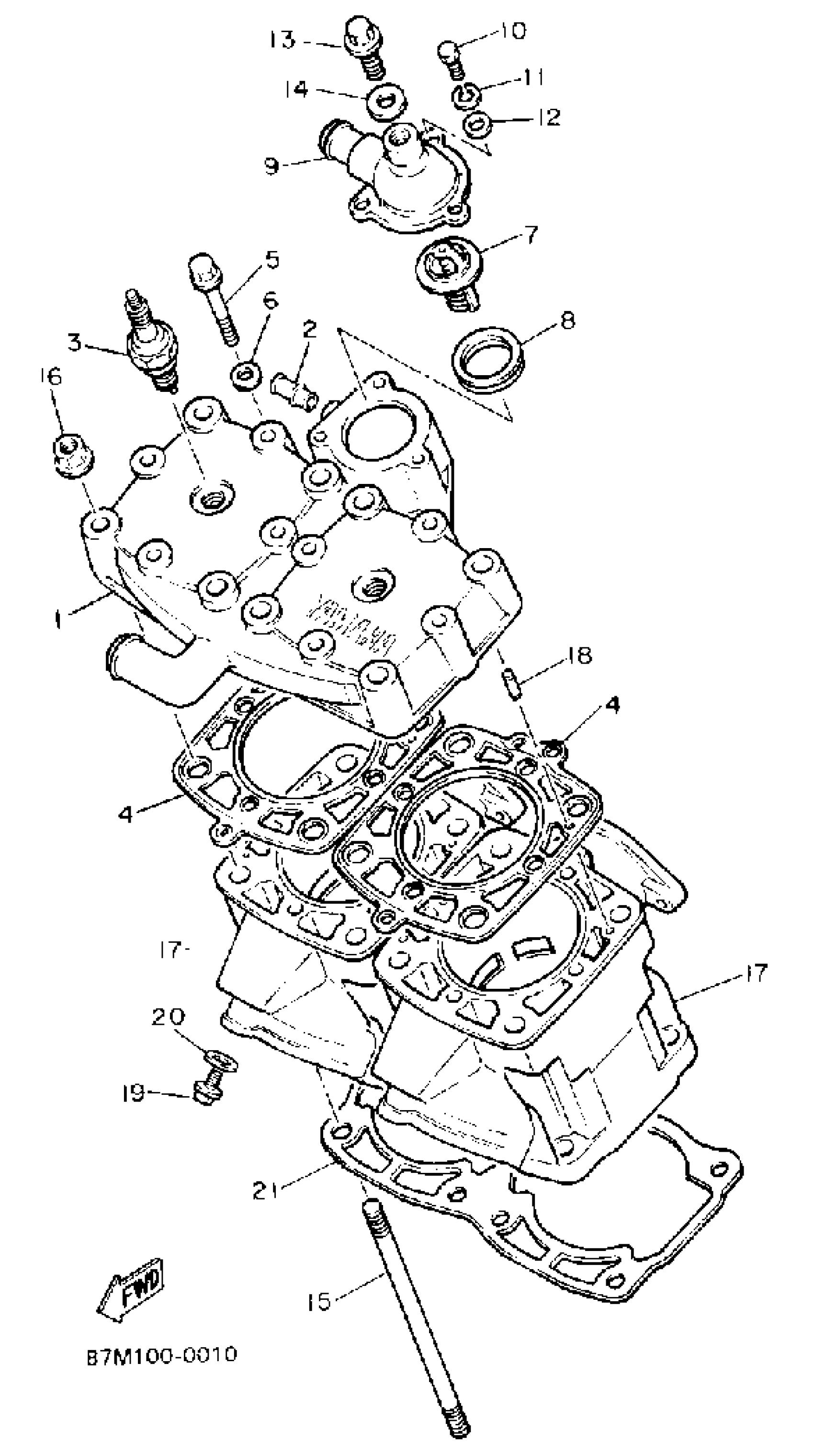 Yamaha EX570STT (EXCITER II ST) 1993 CYLINDER HEAD CYLINDER Diagram
