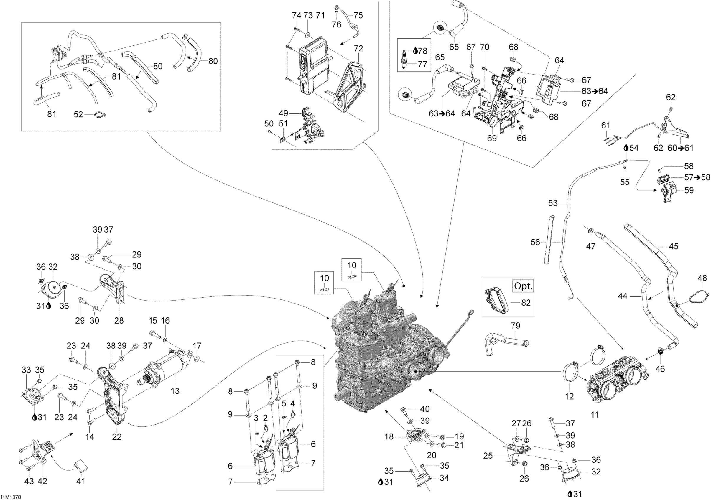 Ski-Doo EXPEDITION LE 600HOE, REV XU, 2013 Engine And Engine Support Diagram