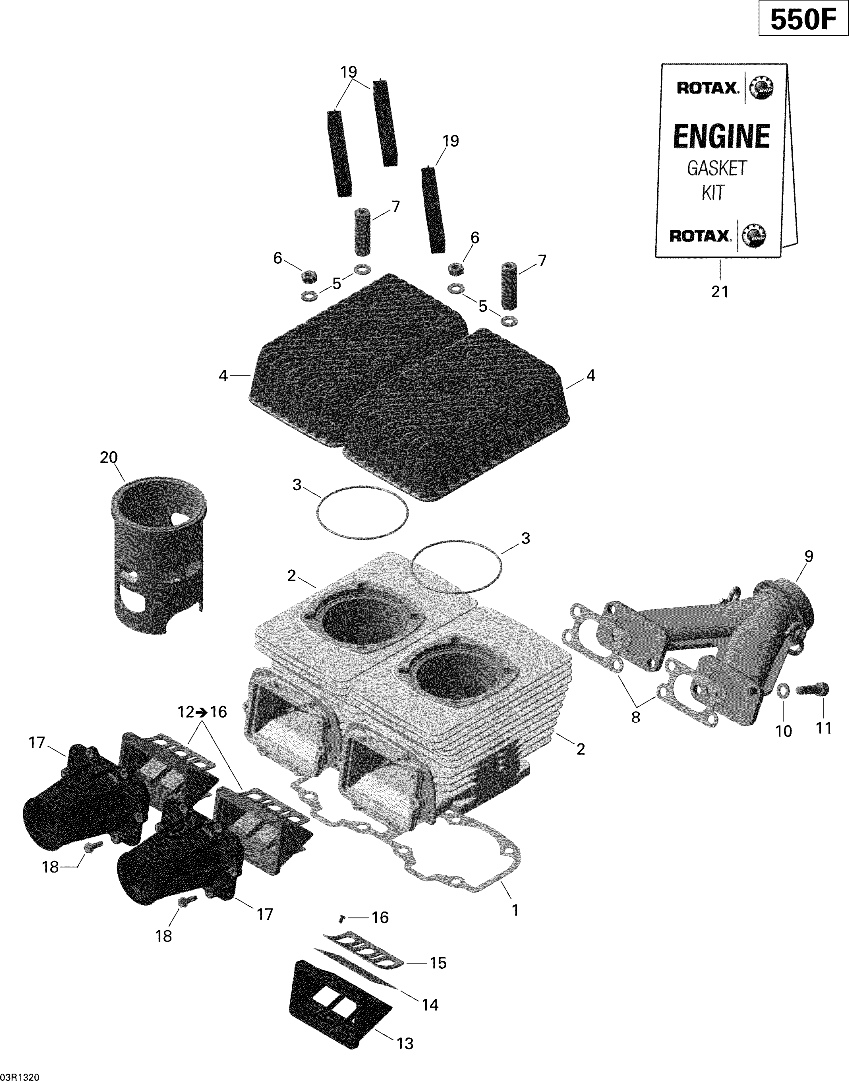Ski-Doo EXPEDITION SPORT 550F XP, 2013 Cylinder, Exhaust Manifold And Reed Valve Diagram