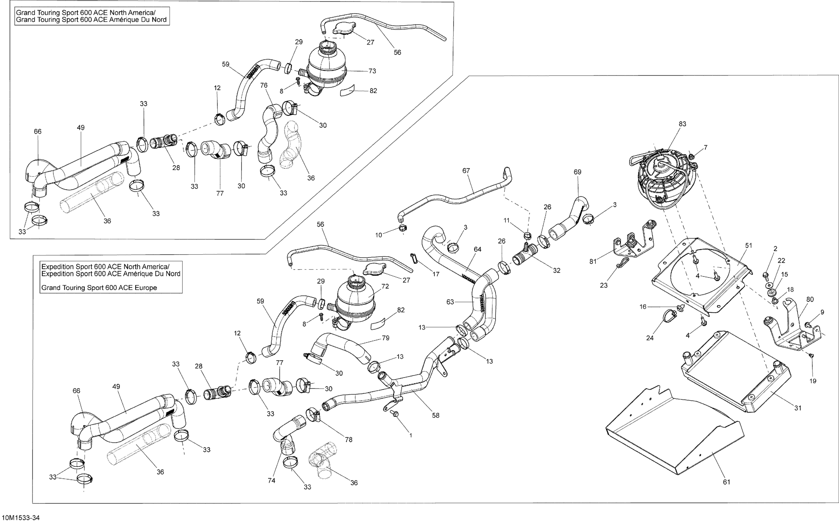 Ski-Doo Expedition Sport 600ACE XS154, 2015 Cooling System _10M1534 Diagram