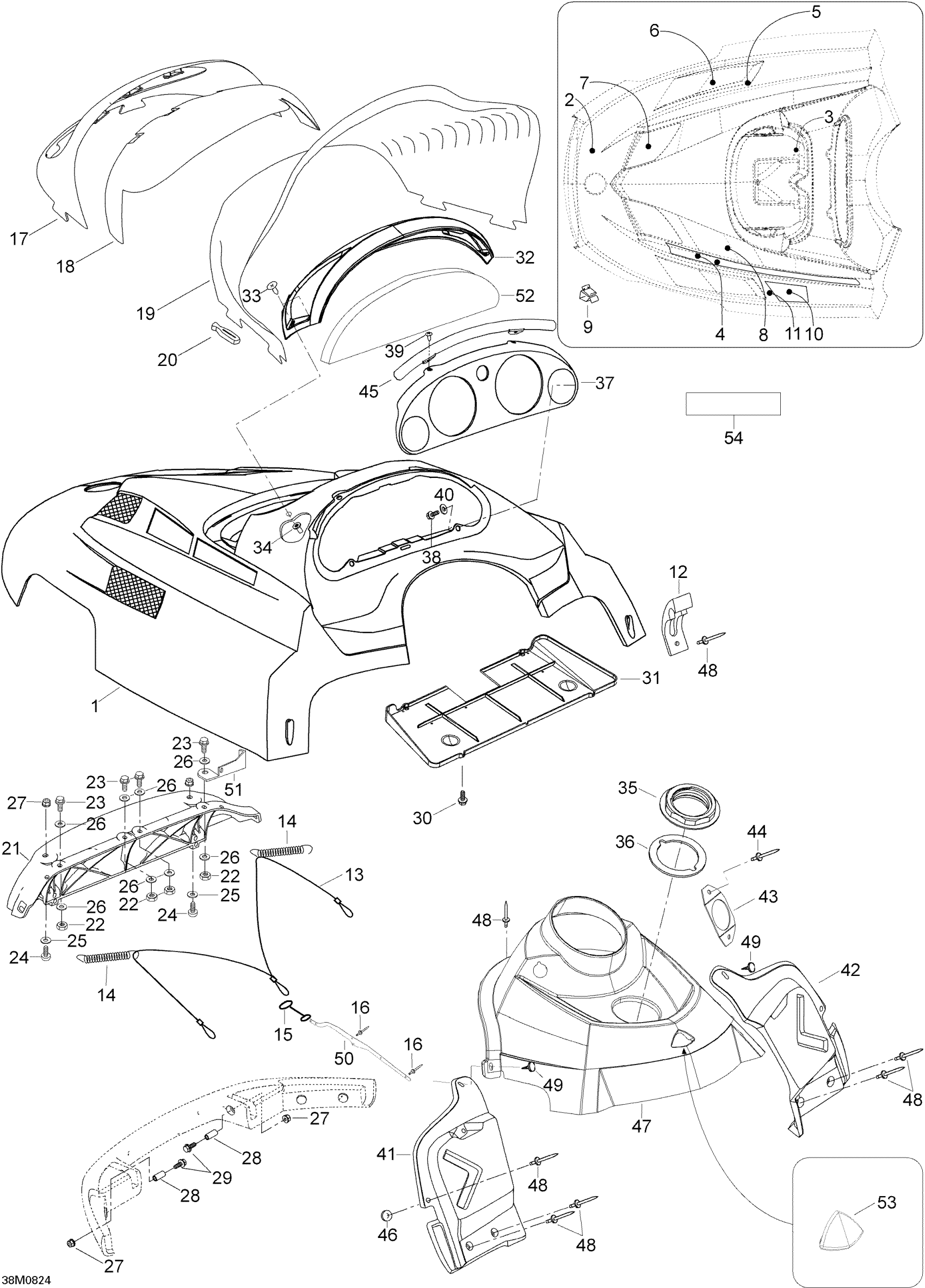 HOOD PRE ASS'Y - Call your local BRP dealership | Includes 1 to 11, Jet Black
