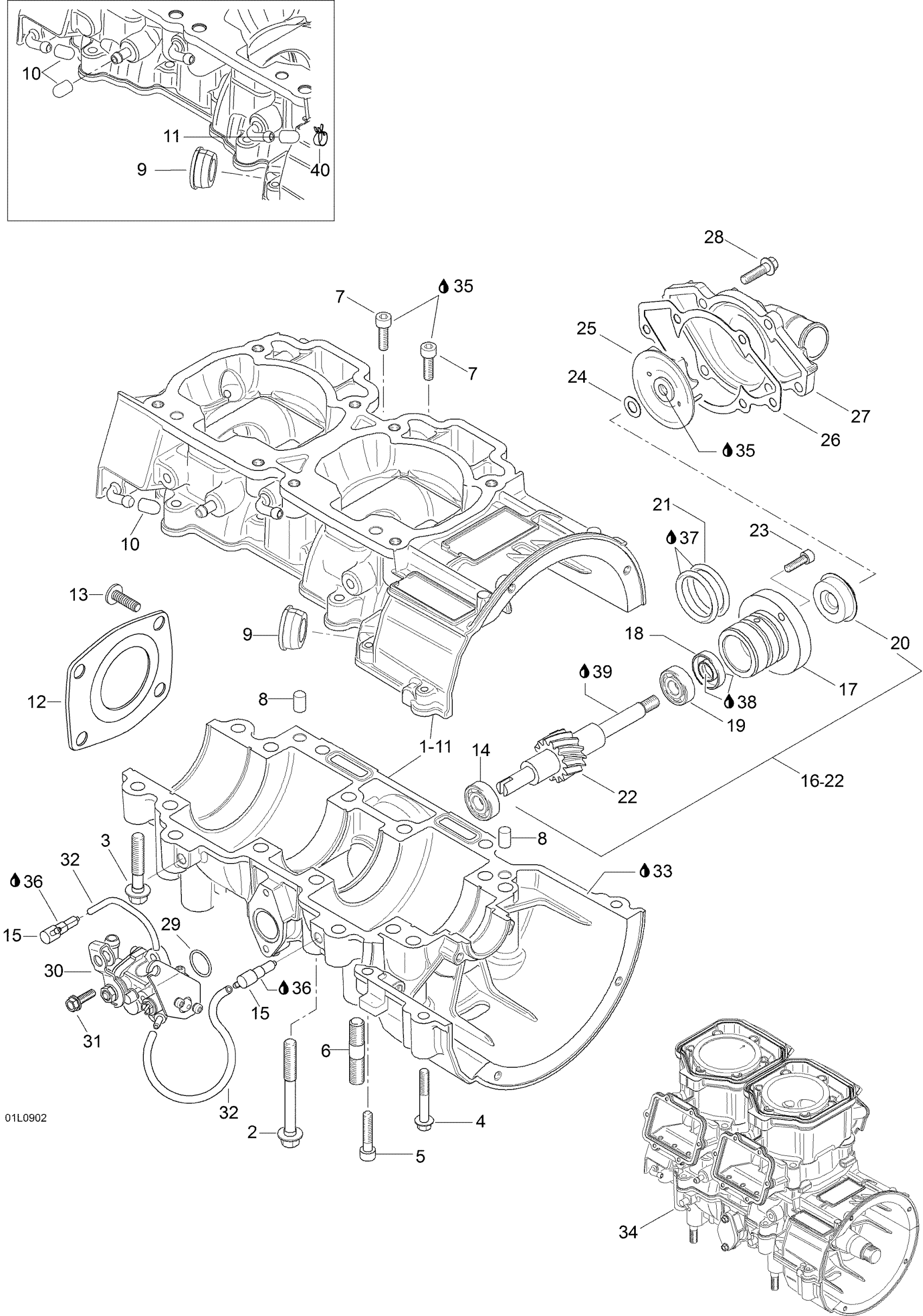 Ski-Doo Expedition TUV 600 H.O. SDI, 2009 Crankcase Diagram