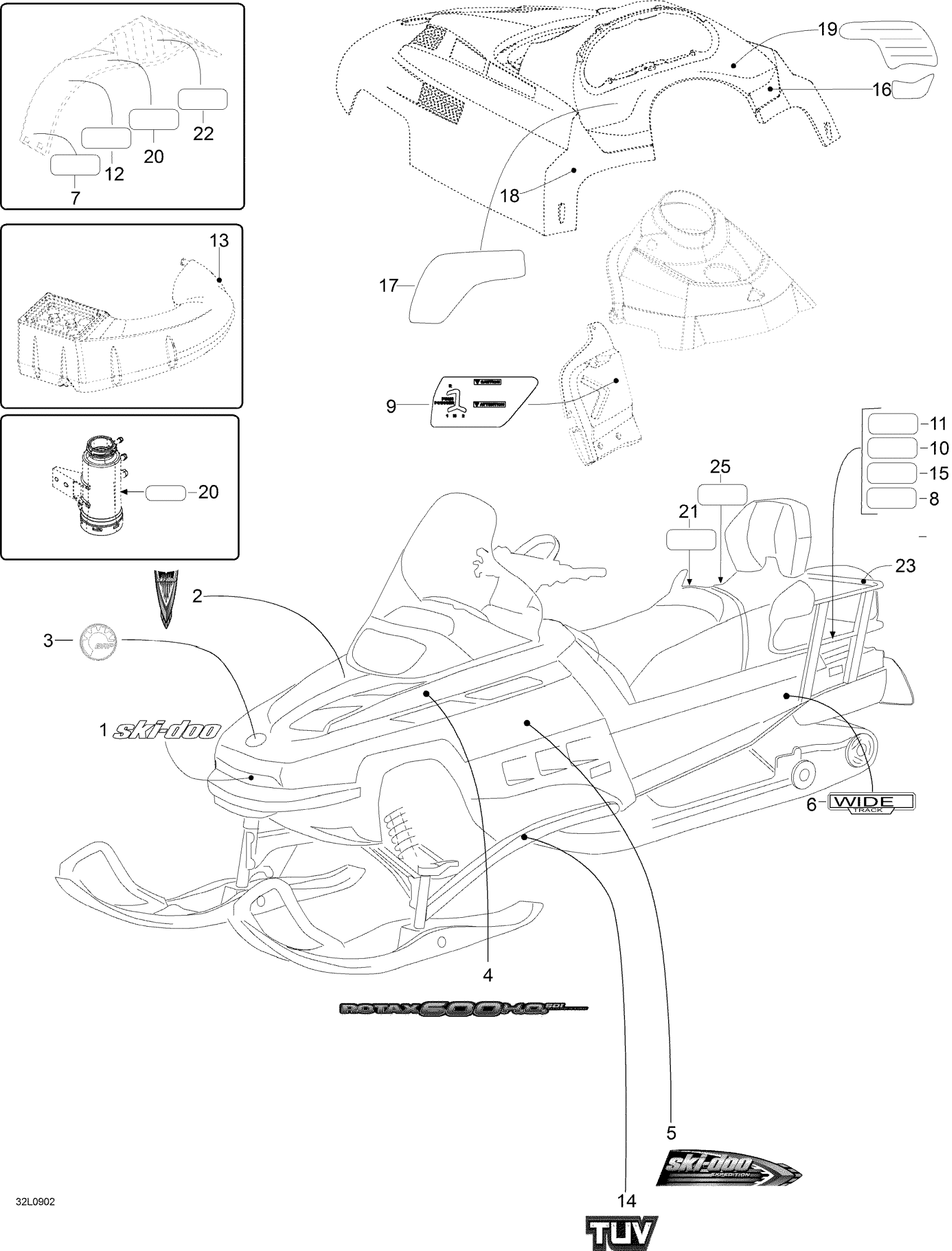 Ski-Doo Expedition TUV 600 H.O. SDI, 2009 Decals Diagram