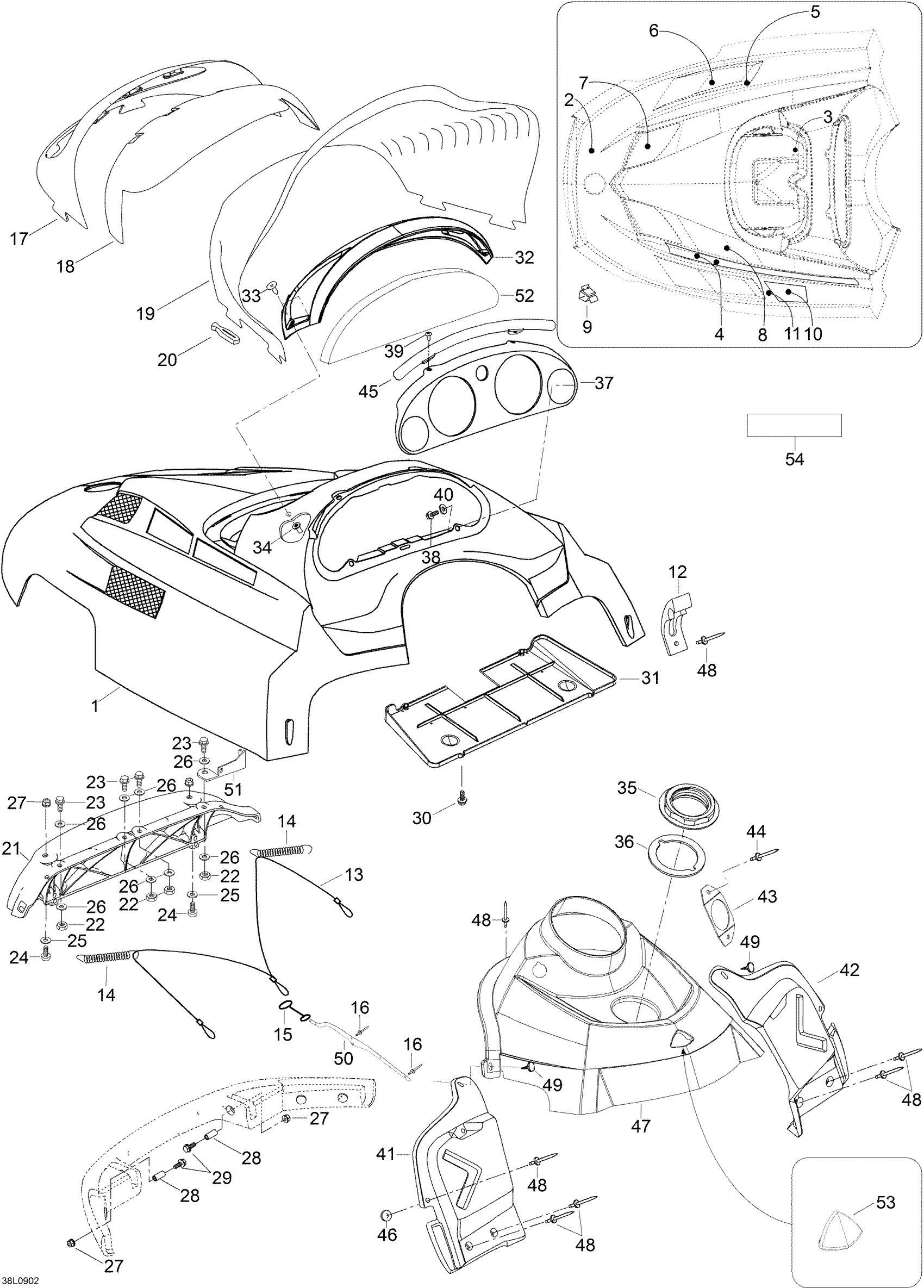 HOOD PRE ASS'Y - Call your local BRP dealership | Includes 1 to 11, Jet Black