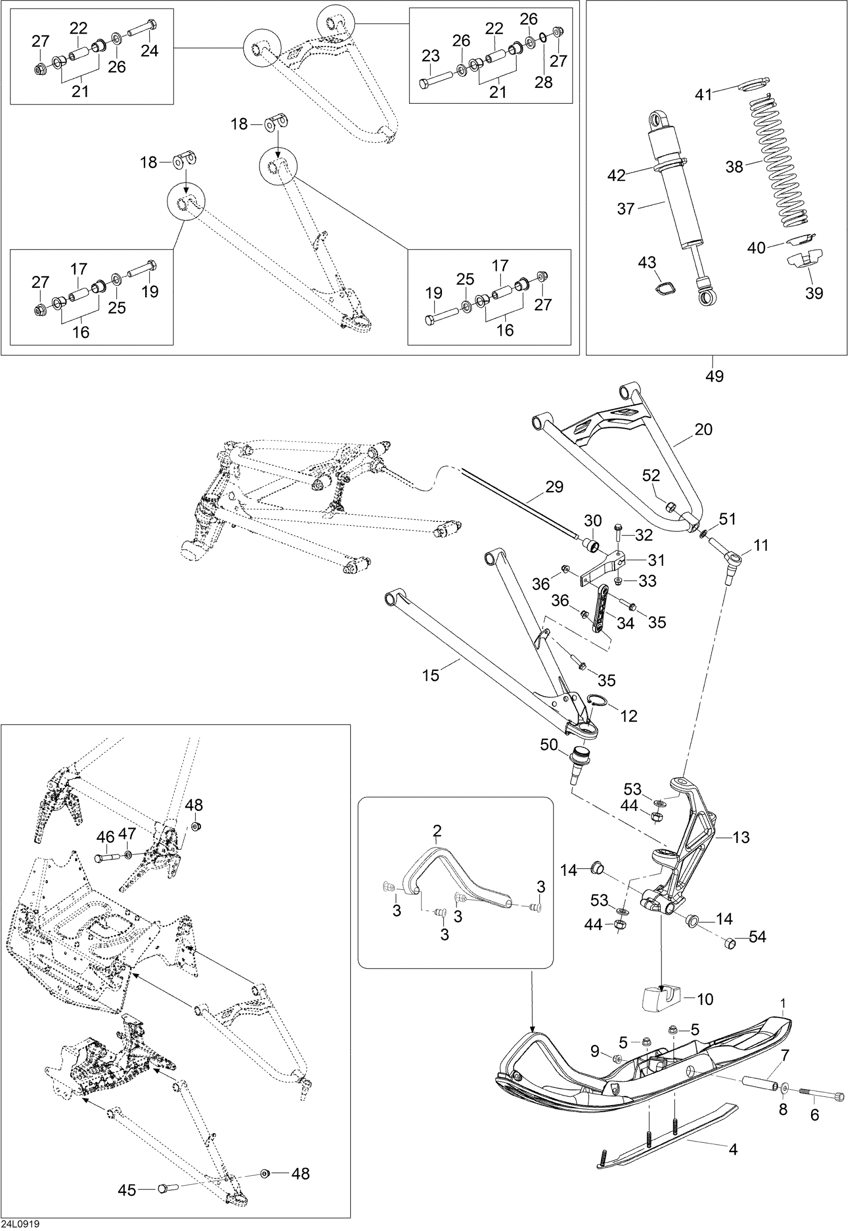 Ski-Doo Expedition TUV 600 H.O. SDI REV-XU, 2009 Front Suspension And Ski Diagram