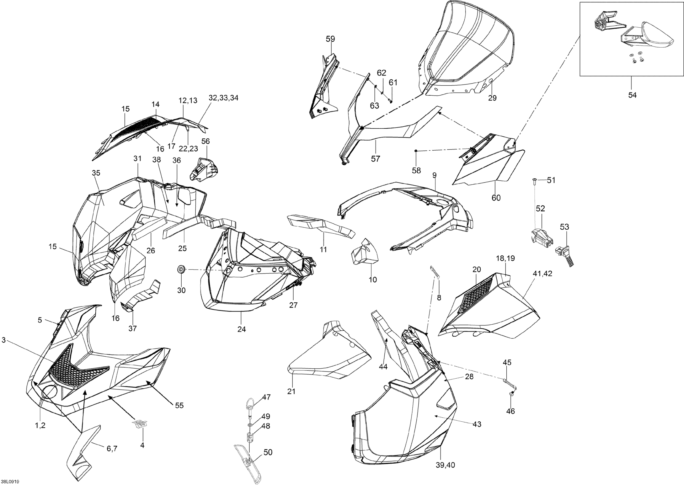 Ski-Doo Expedition TUV 600 H.O. SDI REV-XU, 2009 Hood Diagram