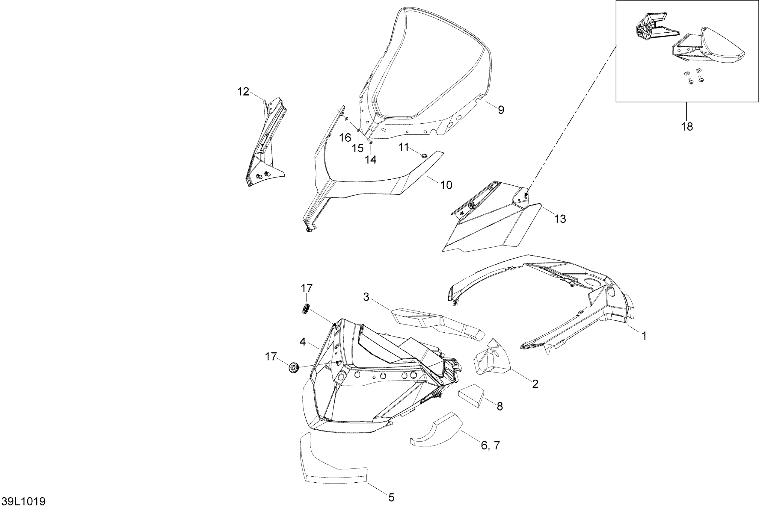 Ski-Doo Expedition TUV 600HO SDI XU, 2010 Windshield And Console Diagram