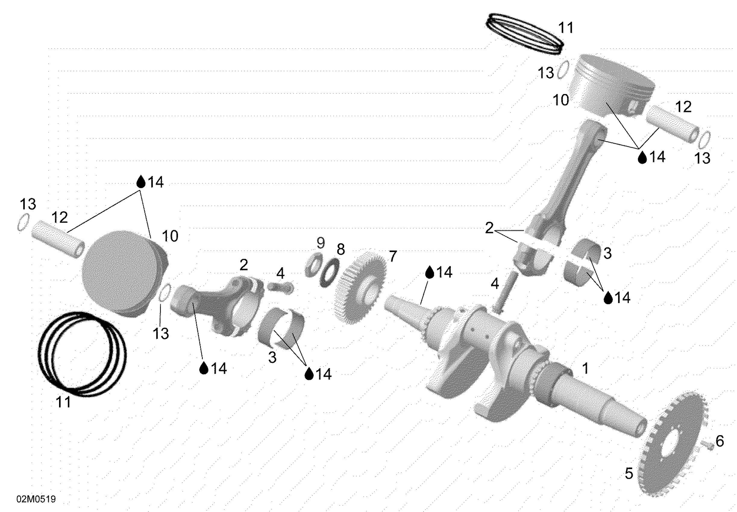 Ski-Doo Expedition V-1000, 2005 Crankshaft And Pistons Diagram