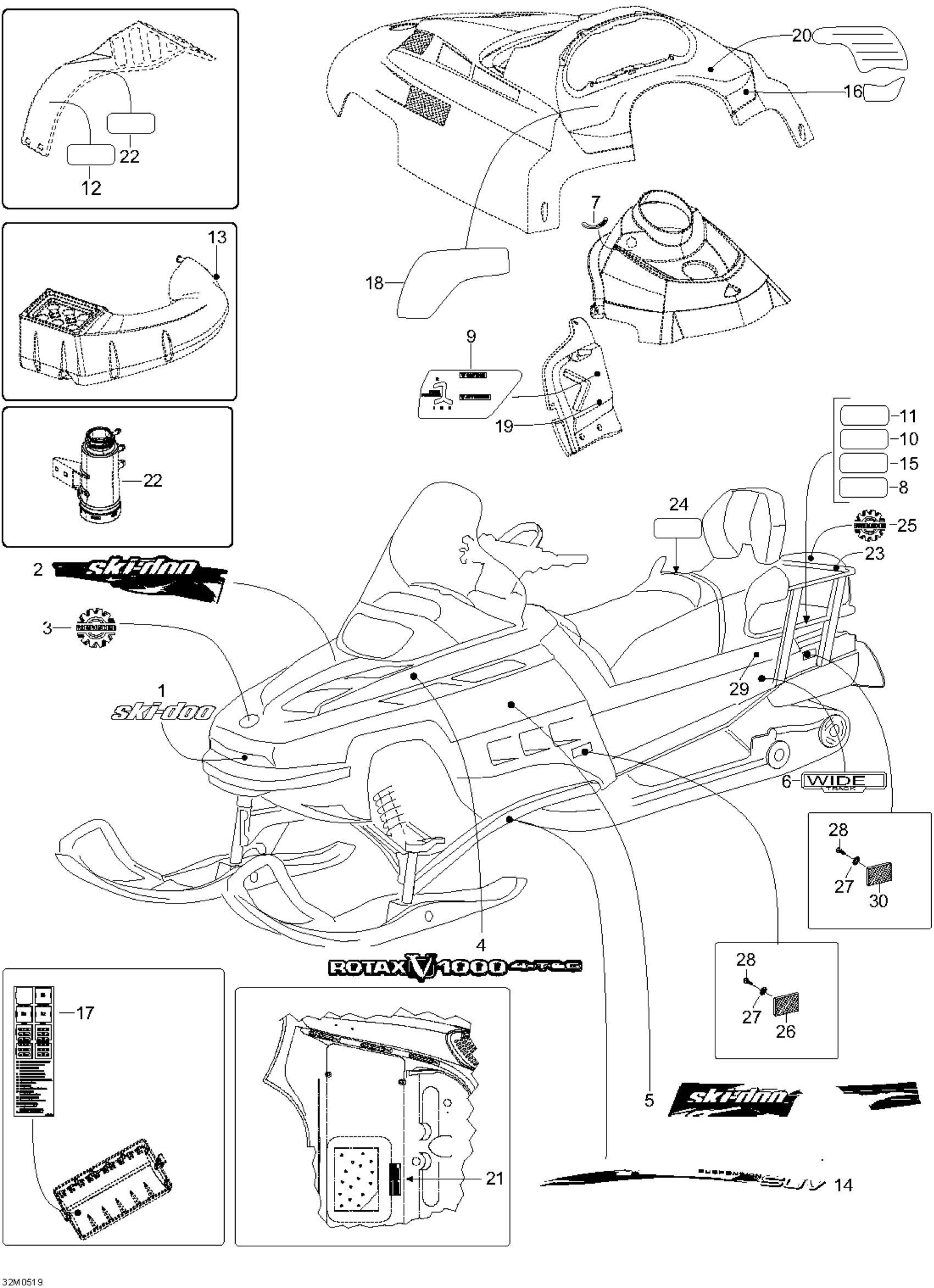 Ski-Doo Expedition V-1000, 2005 Decals Diagram