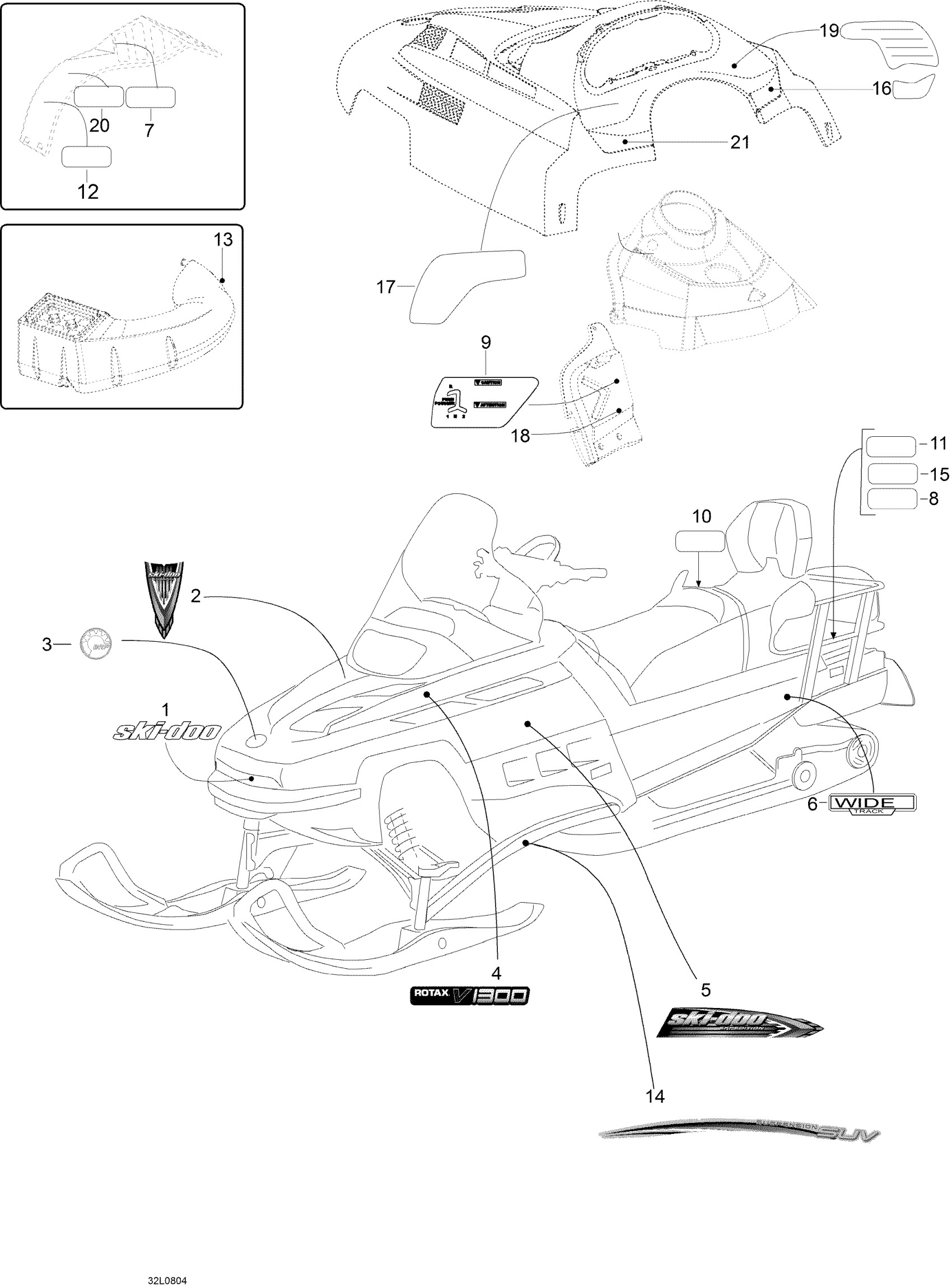 Ski-Doo Expedition V-1300, 2008 Decals Diagram