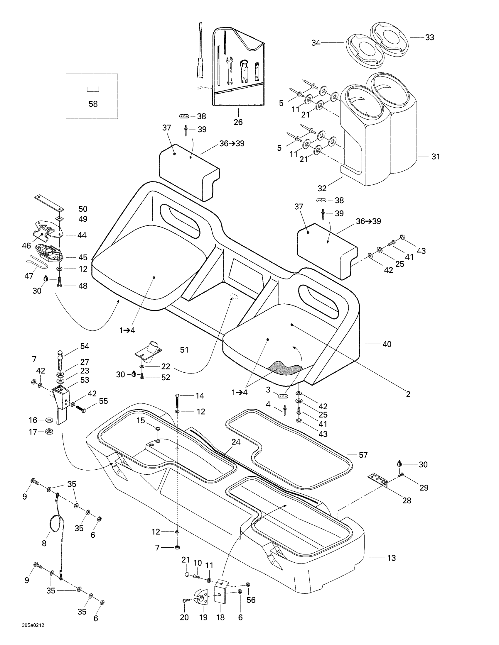 Sea-doo Explorer, 5455, 2002 09- Rear Seat And Storage Compartment Diagram