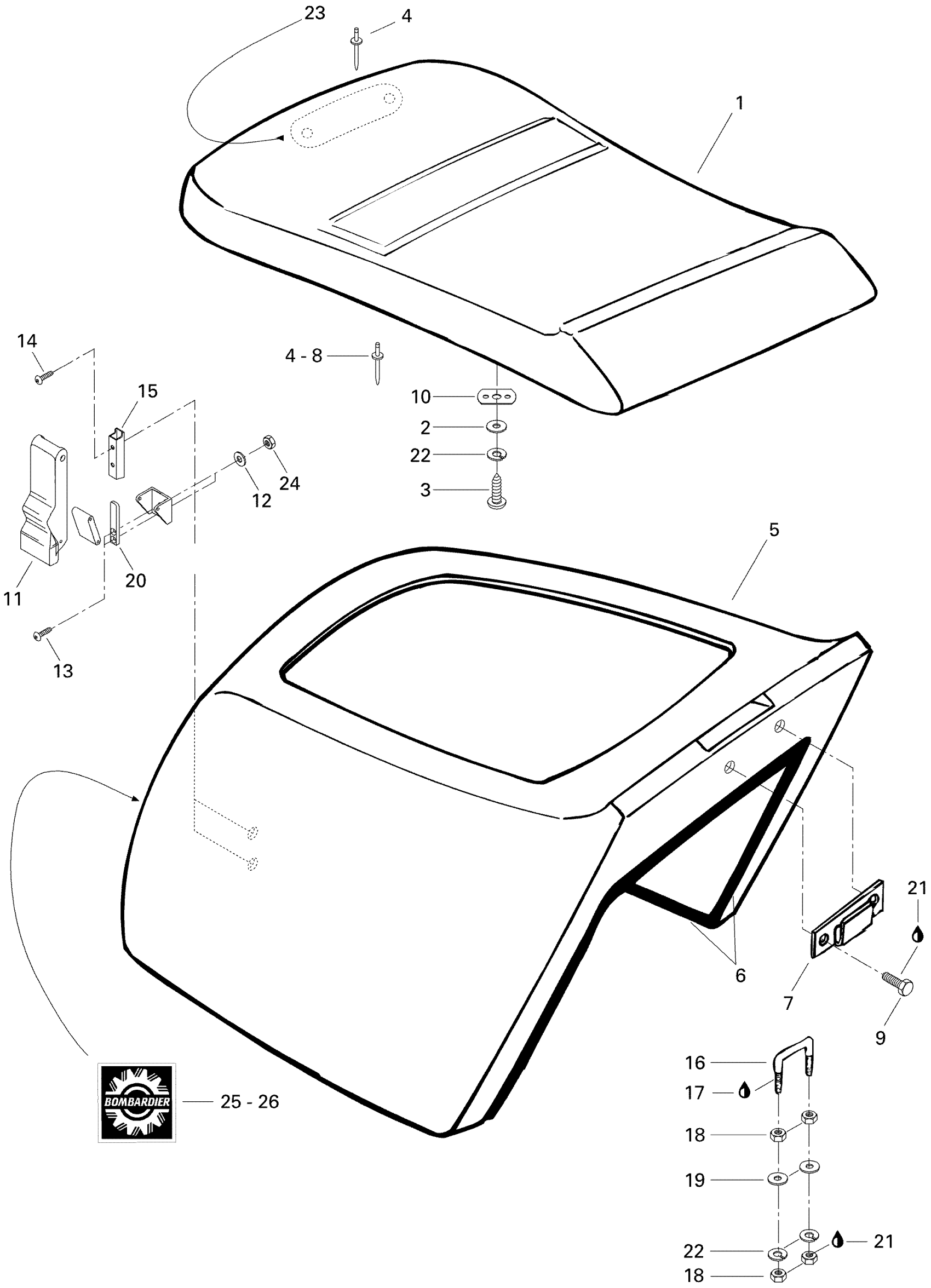 Sea-doo Explorer, 5823, 1996 09- Seat, Engine Cover Diagram