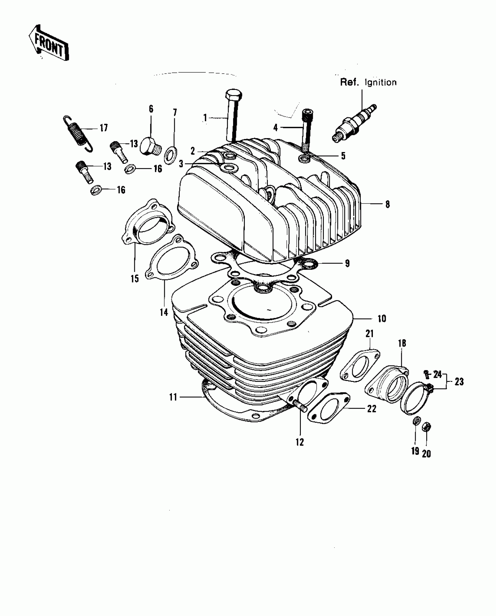 Kawasaki F12MX CYLINDER HEAD/CYLINDER ('73 F12MX 450) Diagram