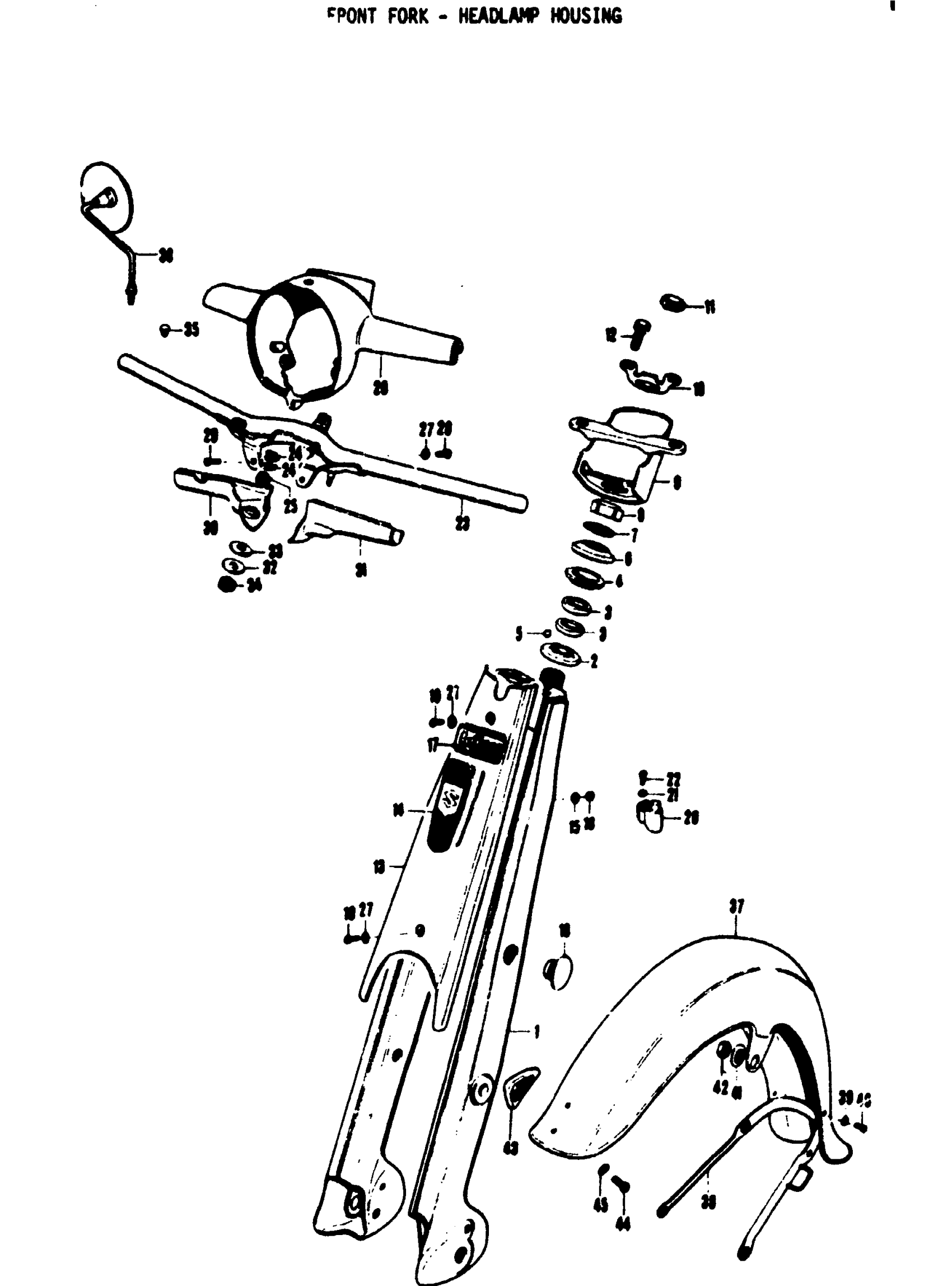 Suzuki F50 (1971) FRONT FORK - HEADLAMP HOUSING Diagram