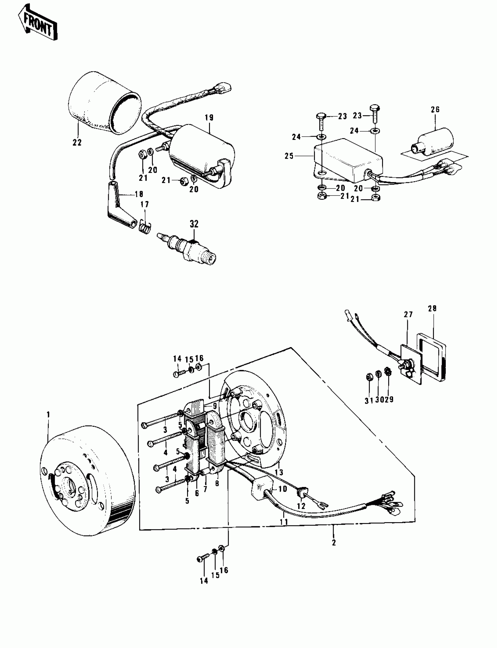Kawasaki F7-D IGNITION/GENERATOR/RECTIFIER ('71-'73 F7 Diagram