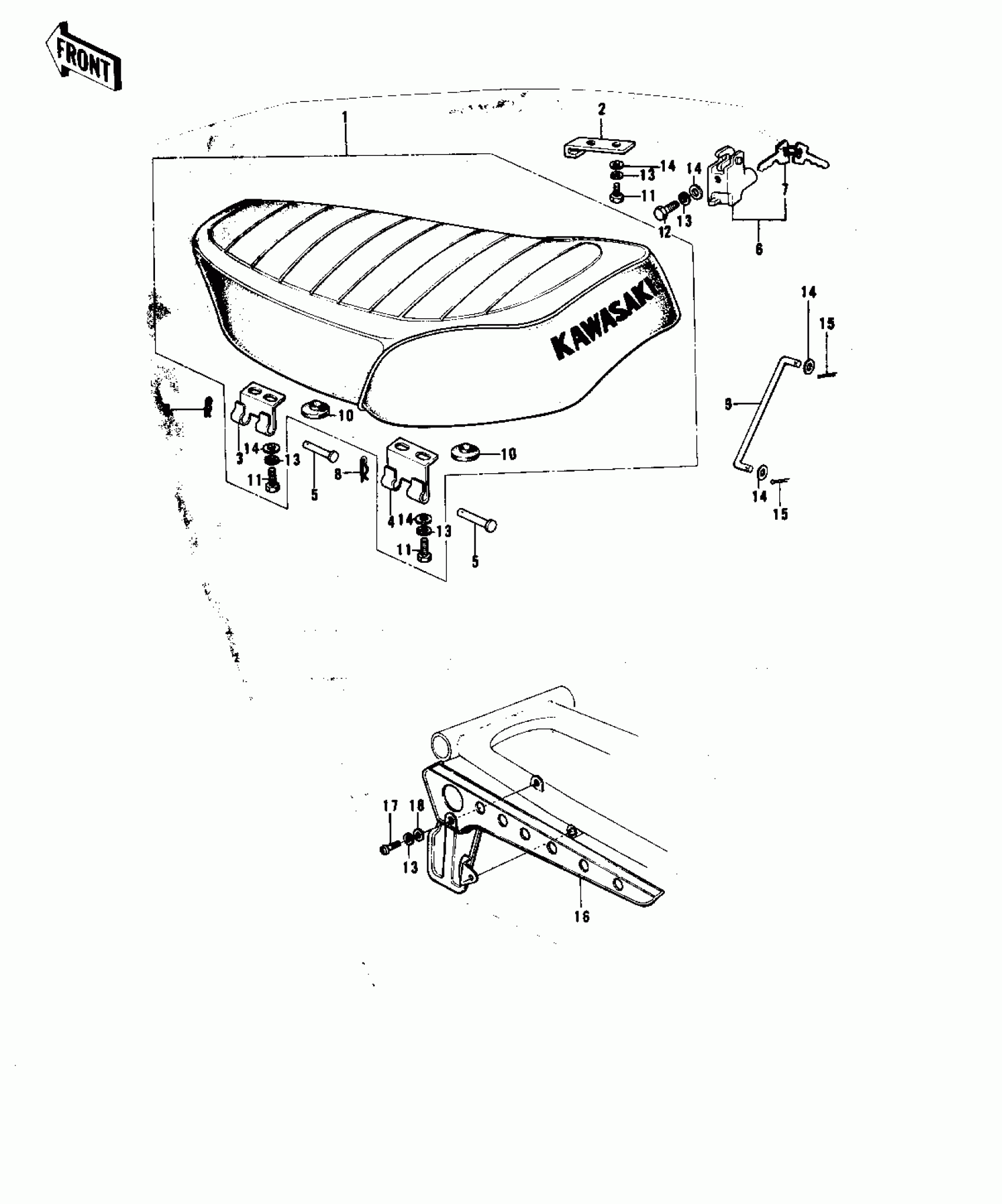 Kawasaki F9-C SEAT/CHAIN COVER ('74-'75 F9-B/F9-C 350) Diagram