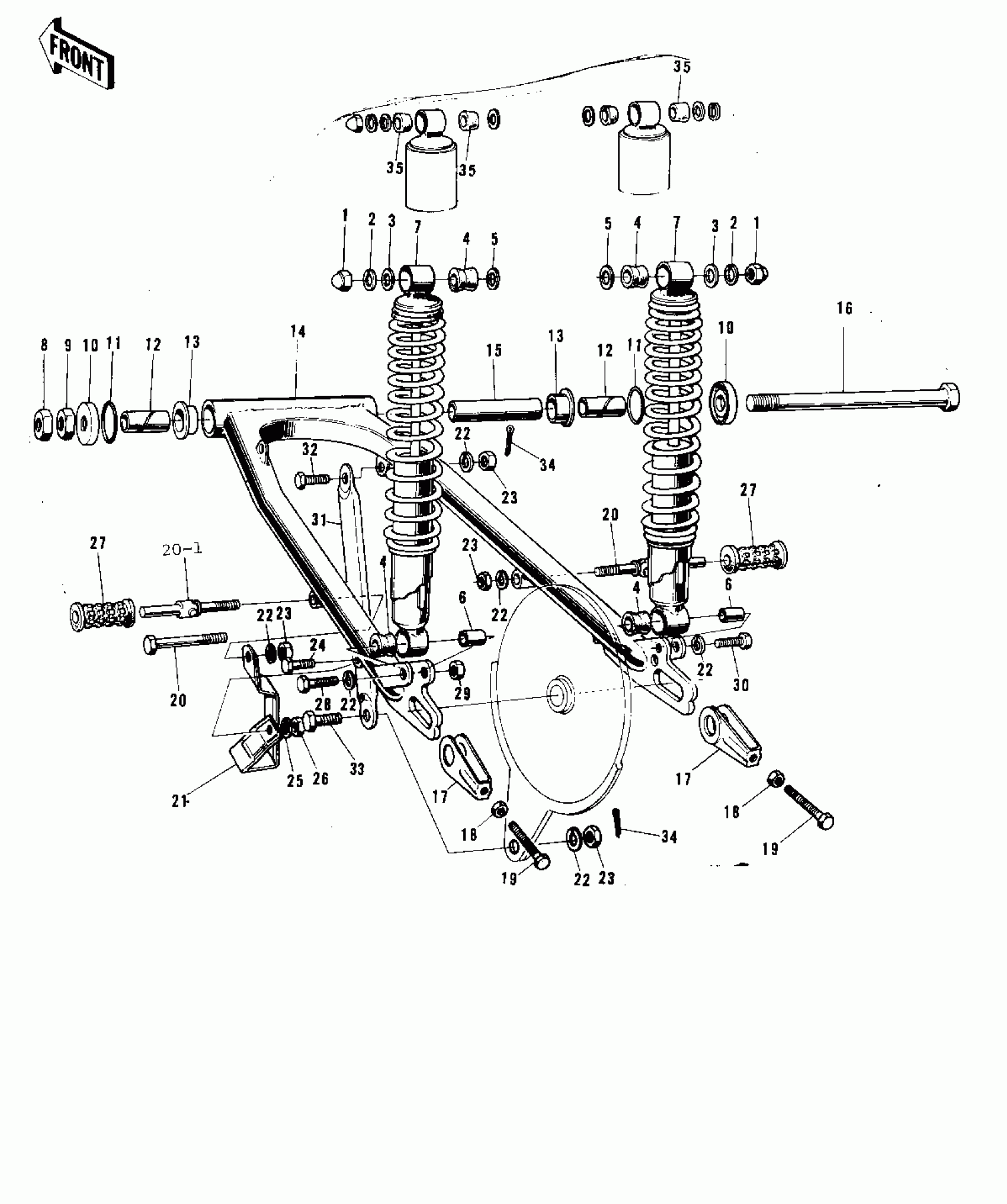 Kawasaki F9-C SWING ARM/SHOCK ABSORBERS ('72-'73 F9/F9 Diagram