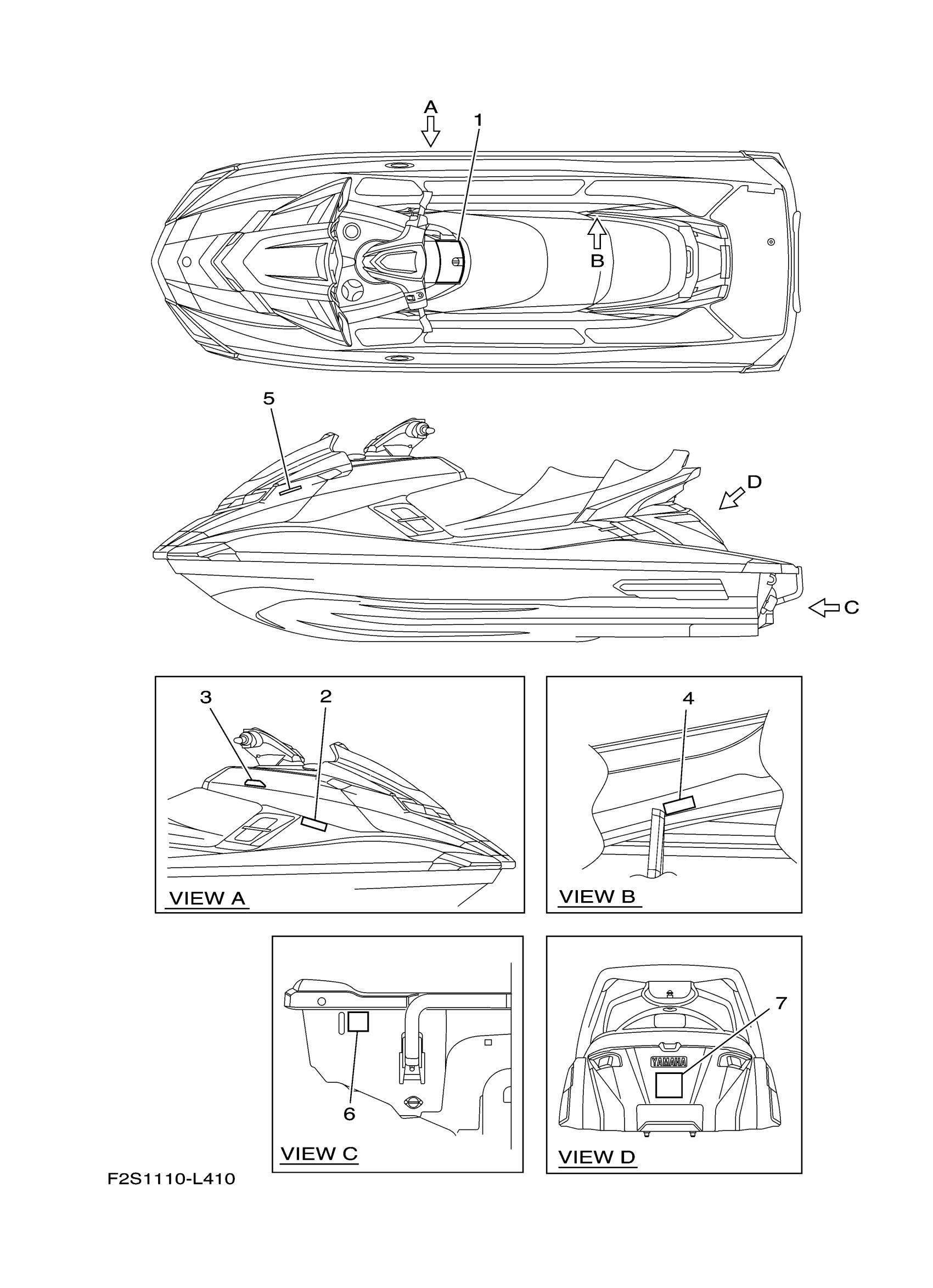 Yamaha FA1800AM (FX CRUISER SHO) F2S7 2013 IMPORTANT LABELS Diagram