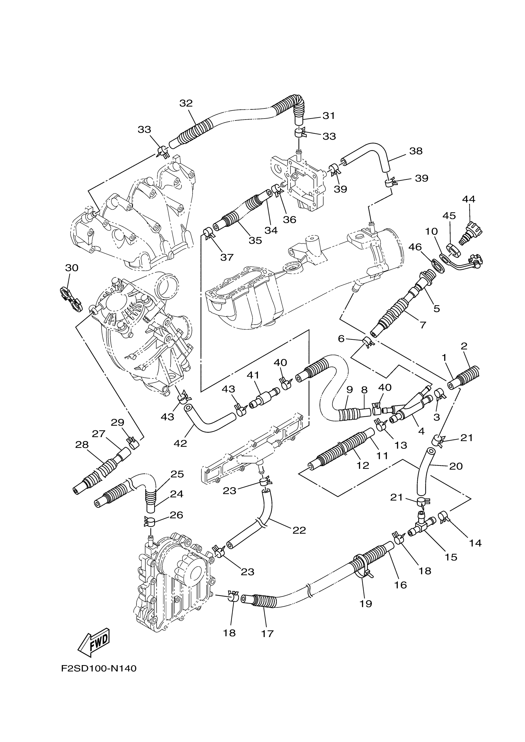 Yamaha FA1800AN (FX CRUISER SHO) F2SD 2014 EXHAUST 2 Diagram