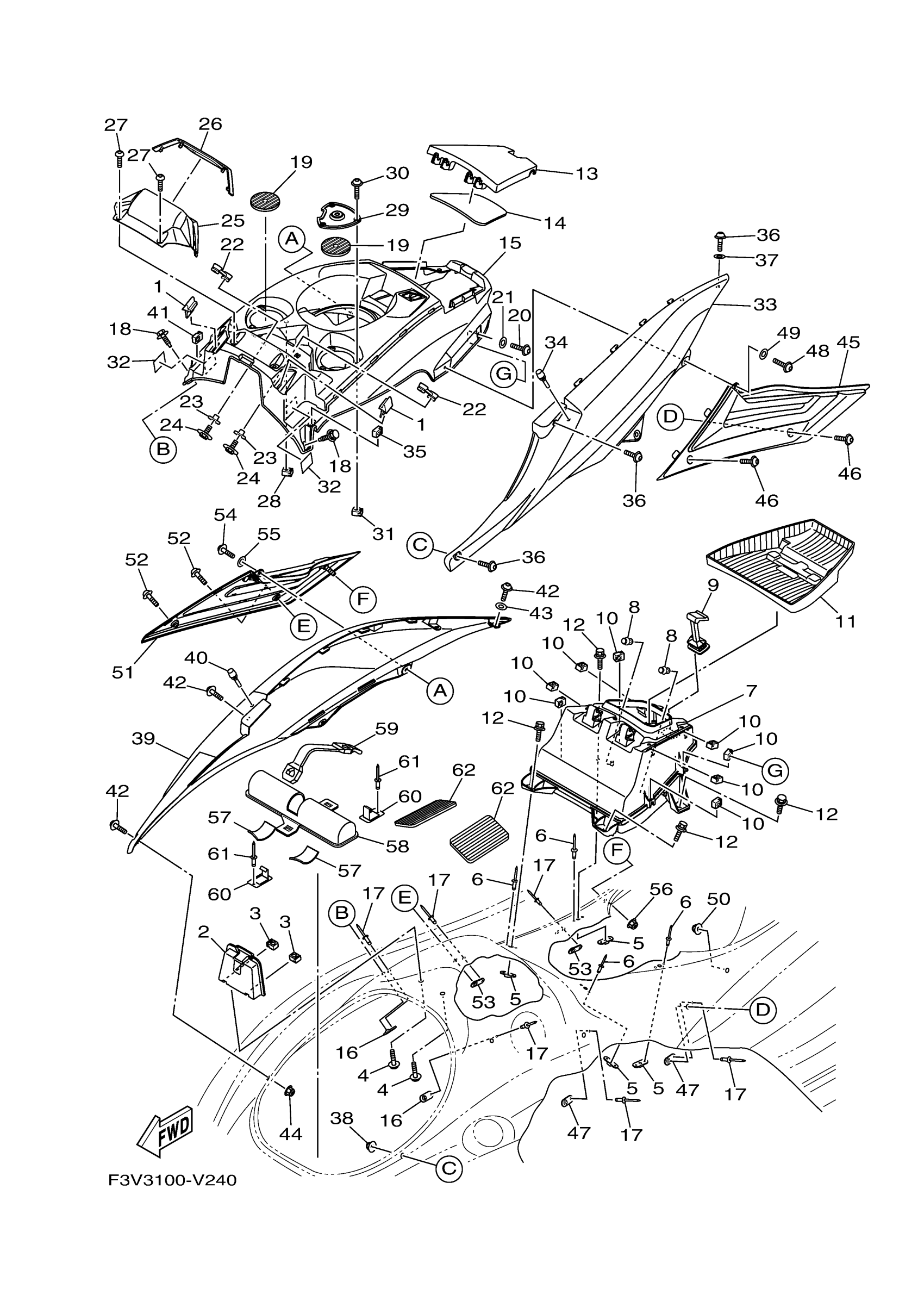 Yamaha FB1800AV (FX CRUISER HO) F3V3 2020 ENGINE HATCH 1 Diagram