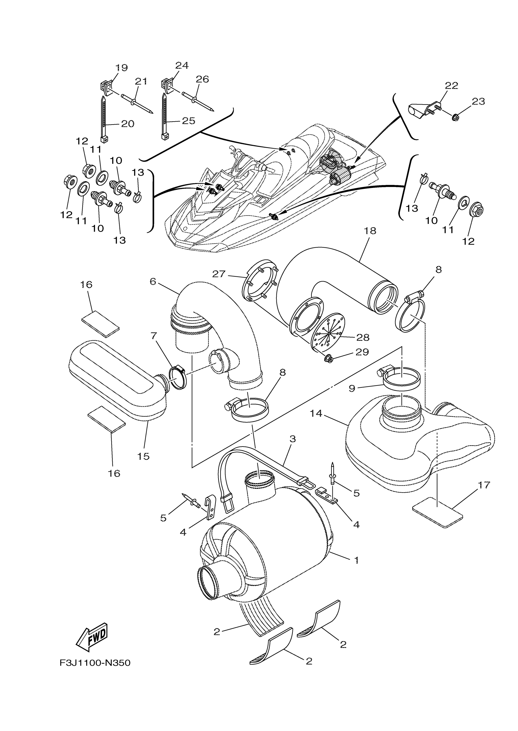 Yamaha FC1800AN (FX CRUISER SVHO) F3J1 2014 EXHAUST 3 Diagram
