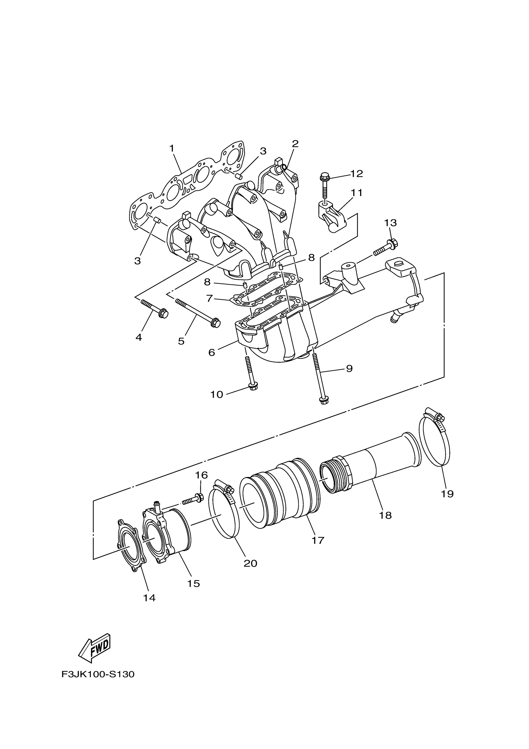 Yamaha FC1800AS (FX CRUISER SVHO) F3JK 2017 EXHAUST 1 Diagram