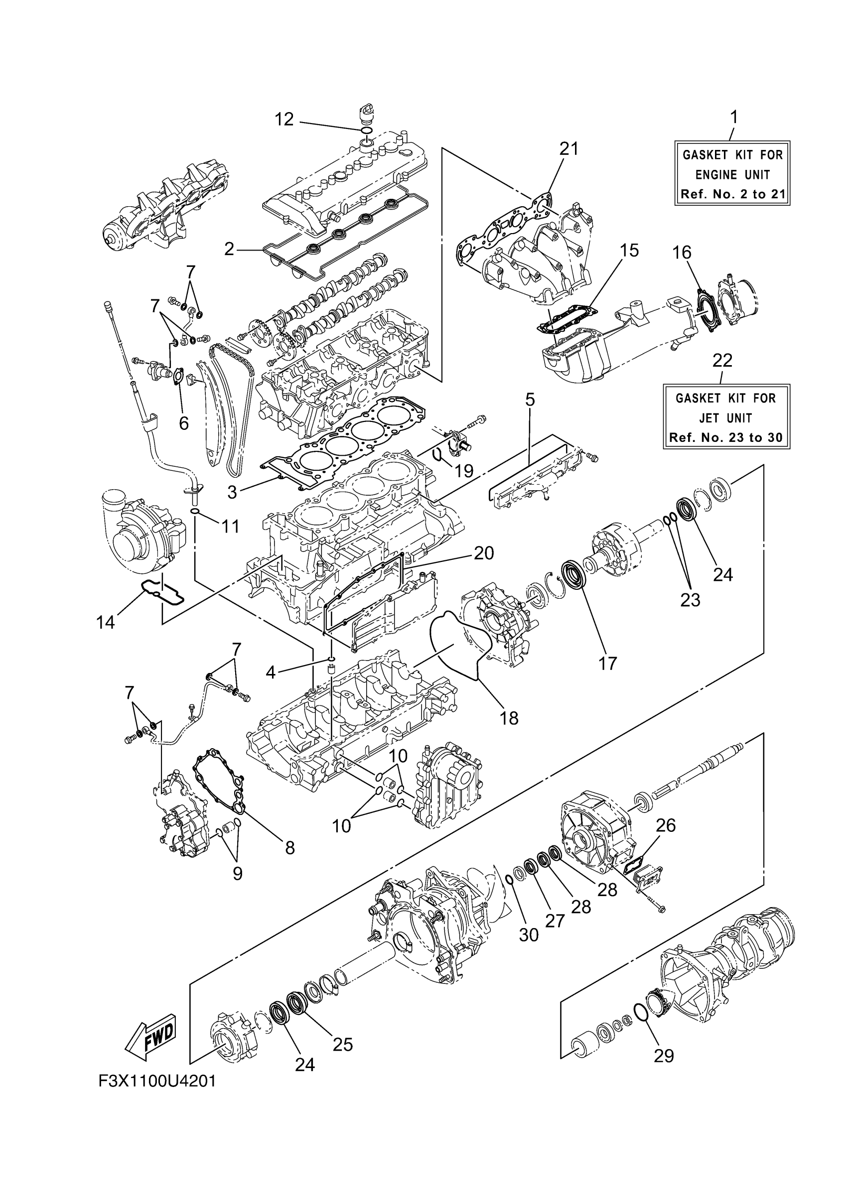 Yamaha FC1800AU (FX CRUISER SVHO) F3X1 2019 REPAIR KIT 1 Diagram