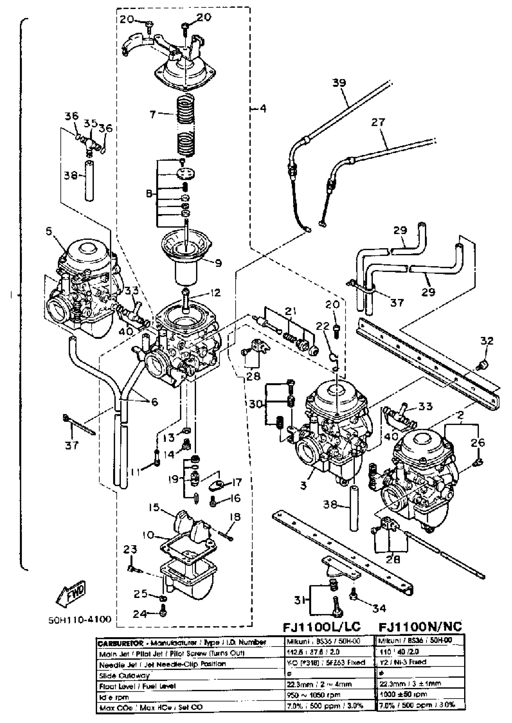 Yamaha FJ1100LC (FJ1100 CA) 1984 CARBURETOR Diagram