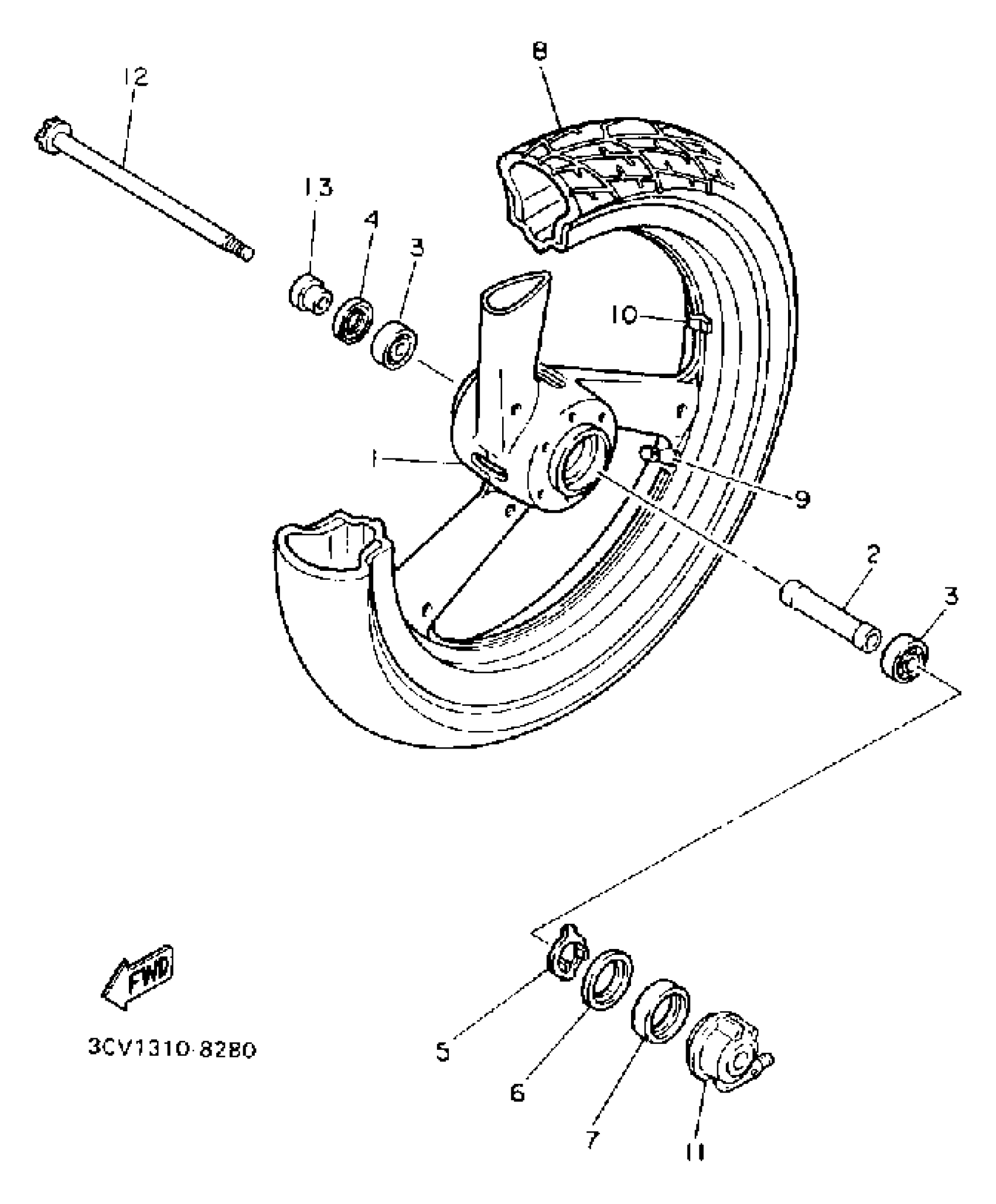 Yamaha FJ1200AC (FJ1200 CA) 1990 FRONT WHEEL Diagram