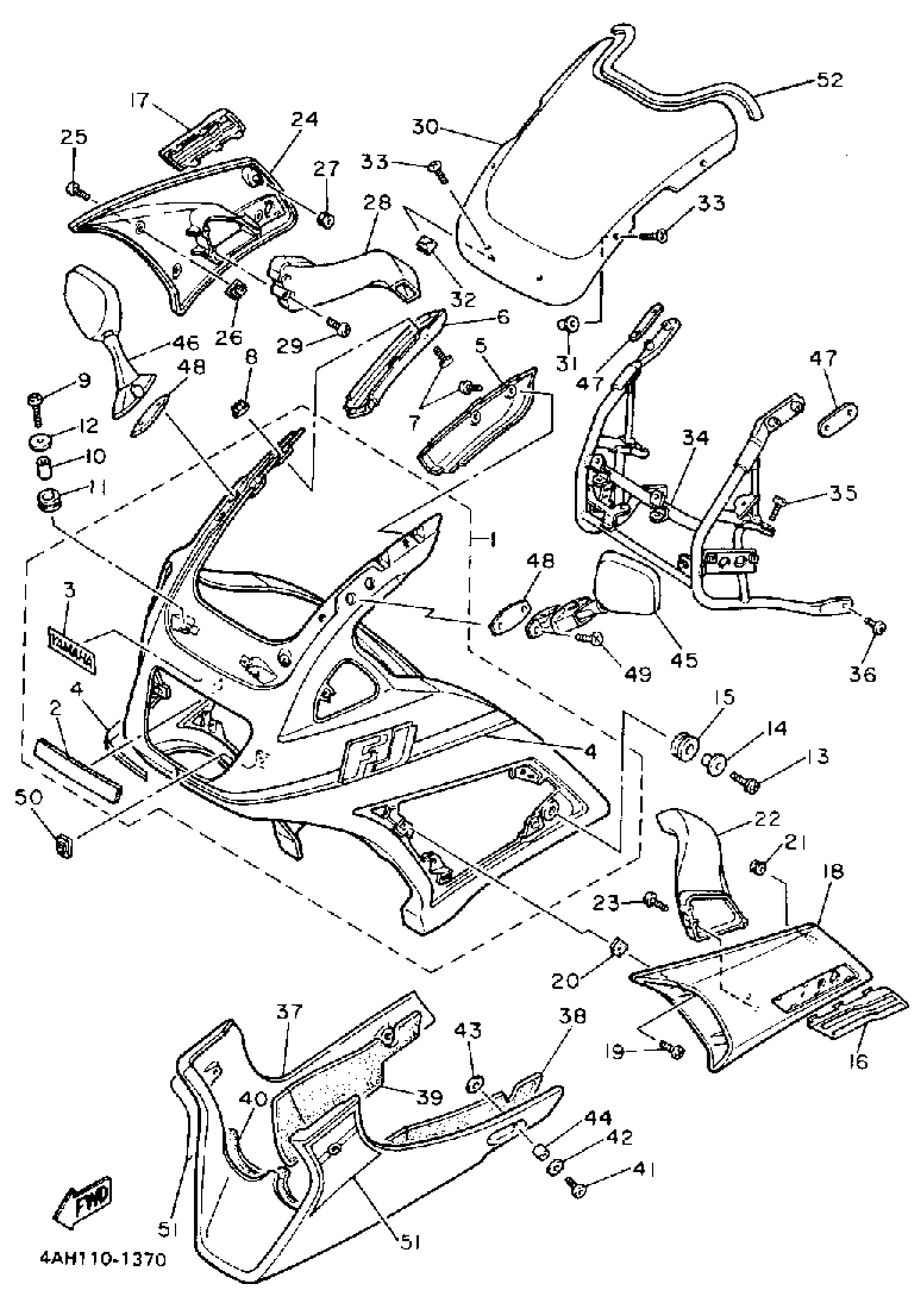 Yamaha FJ1200ADC (FJ1200 CA) 1992 COWLING 1 Diagram