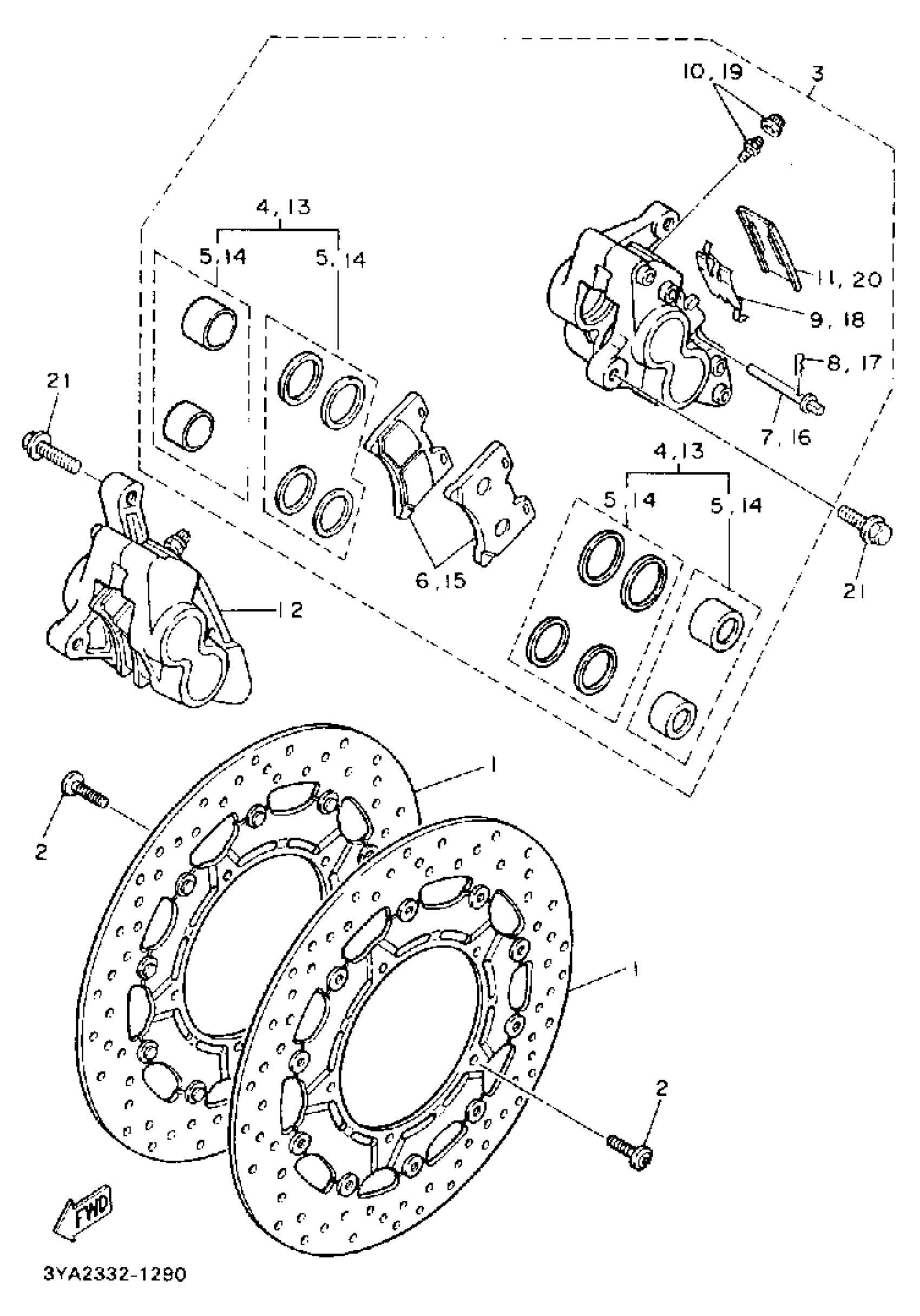 Yamaha FJ1200ADC (FJ1200 CA) 1992 FRONT BRAKE CALIPER Diagram
