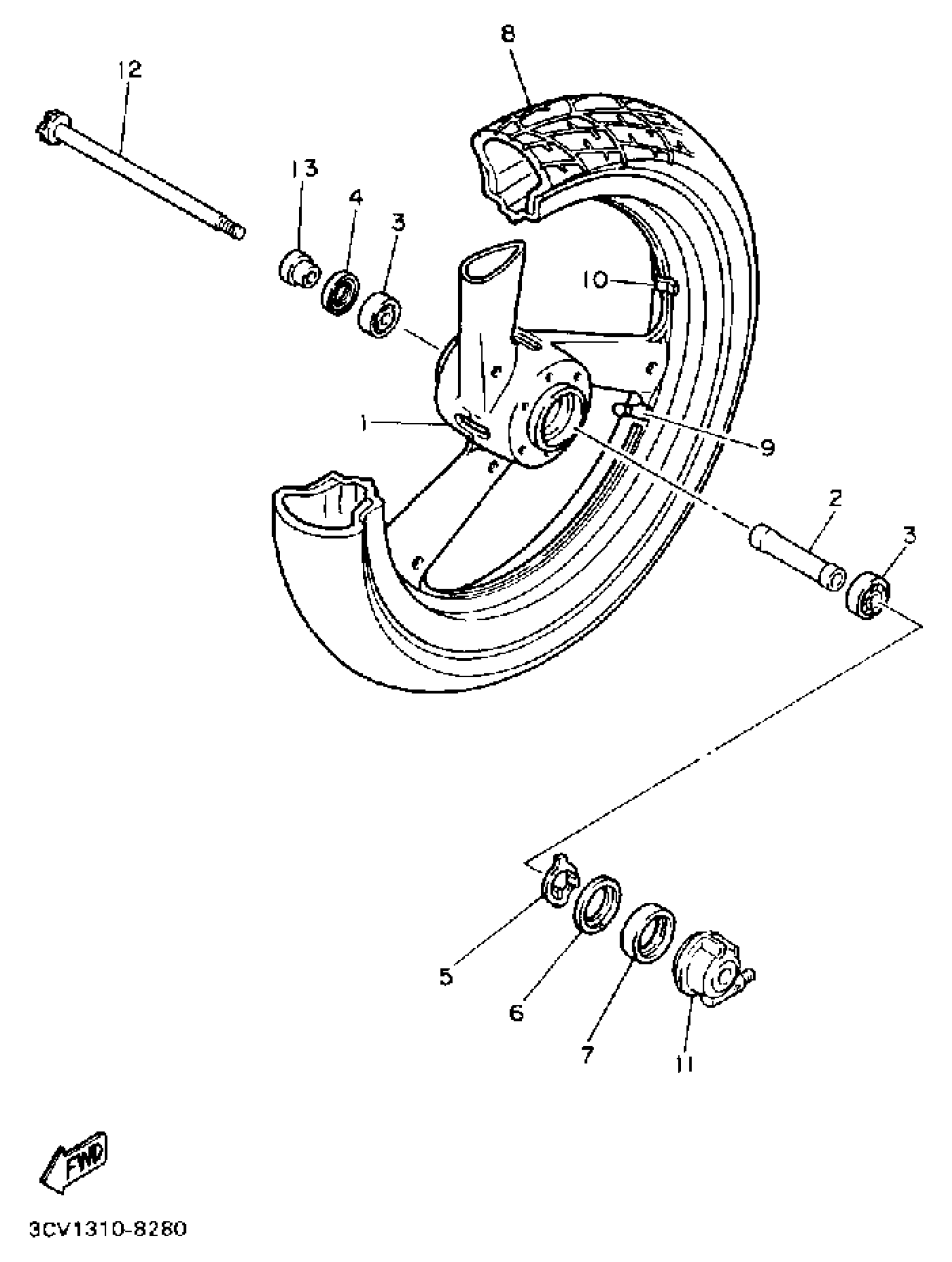 Yamaha FJ1200BC (FJ1200 CA) 1991 FRONT WHEEL Diagram