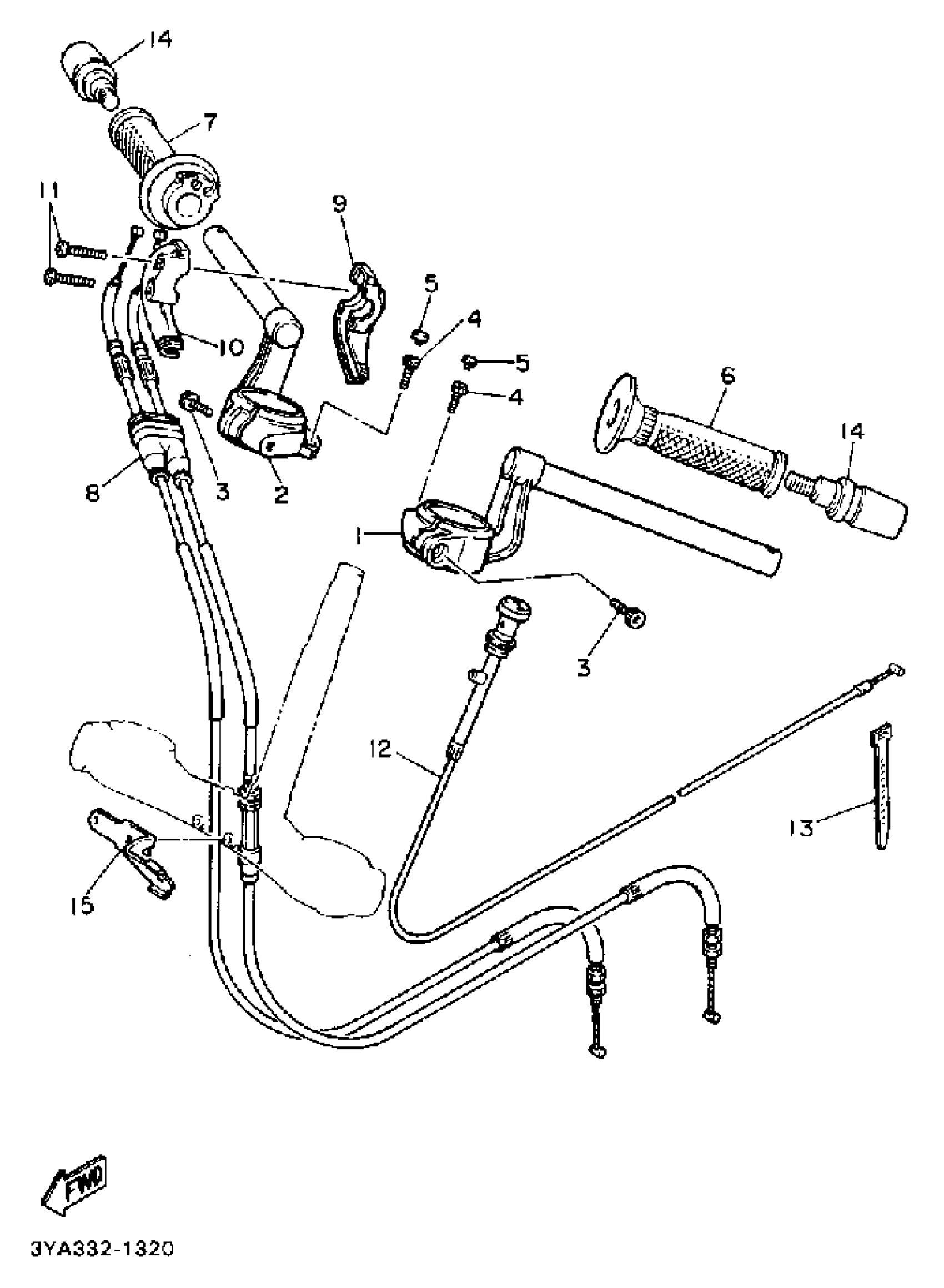 Yamaha FJ1200BC (FJ1200 CA) 1991 HANDLEBAR CABLE Diagram