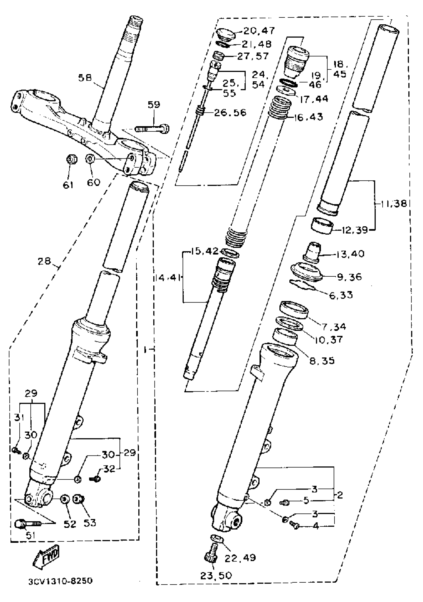 Yamaha FJ1200WC (FJ1200 CA) 1989 FRONT FORK Diagram