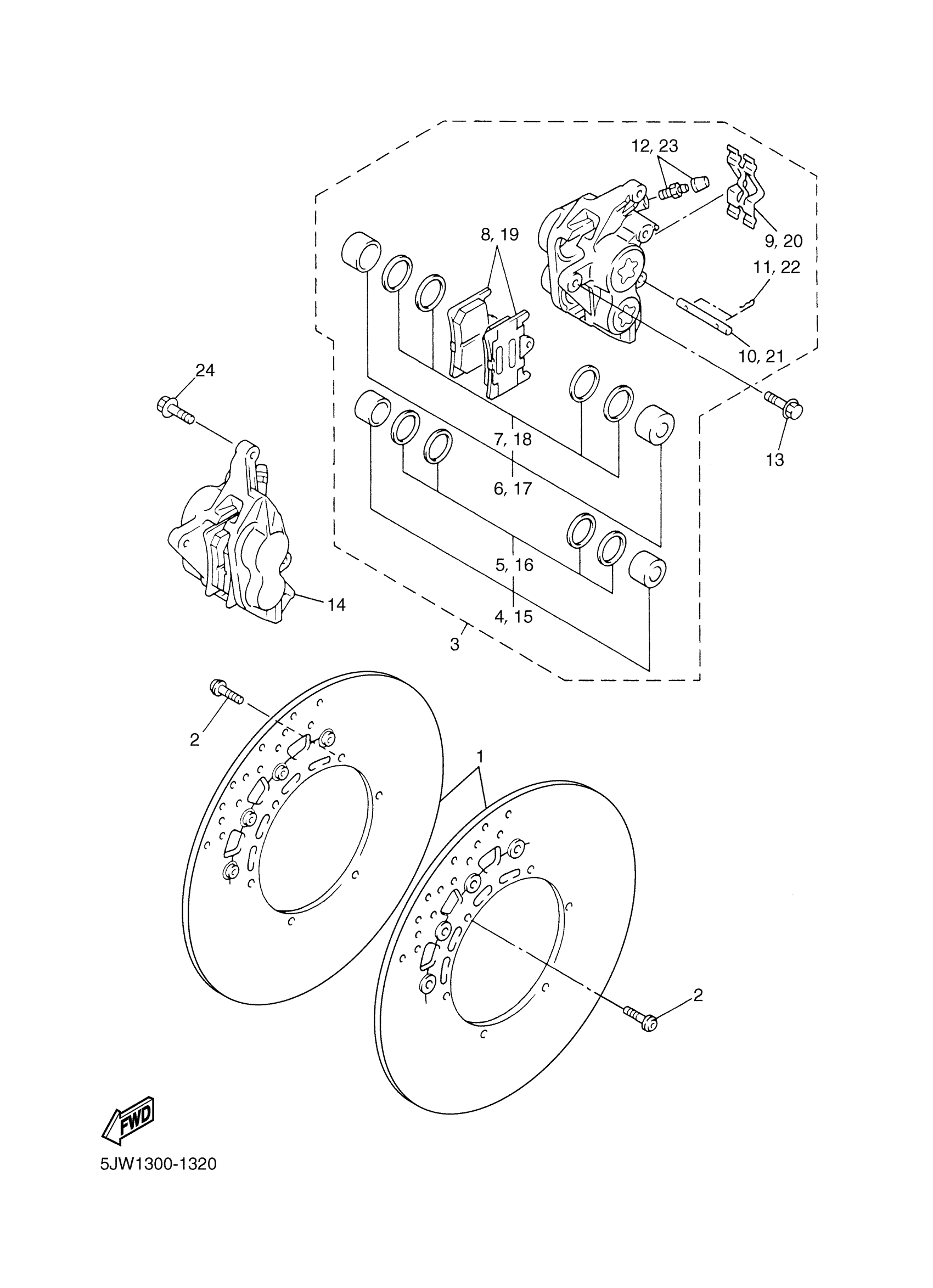 Yamaha FJR1300RC (FJR1300 CA) 5JW8 2003 FRONT BRAKE CALIPER Diagram