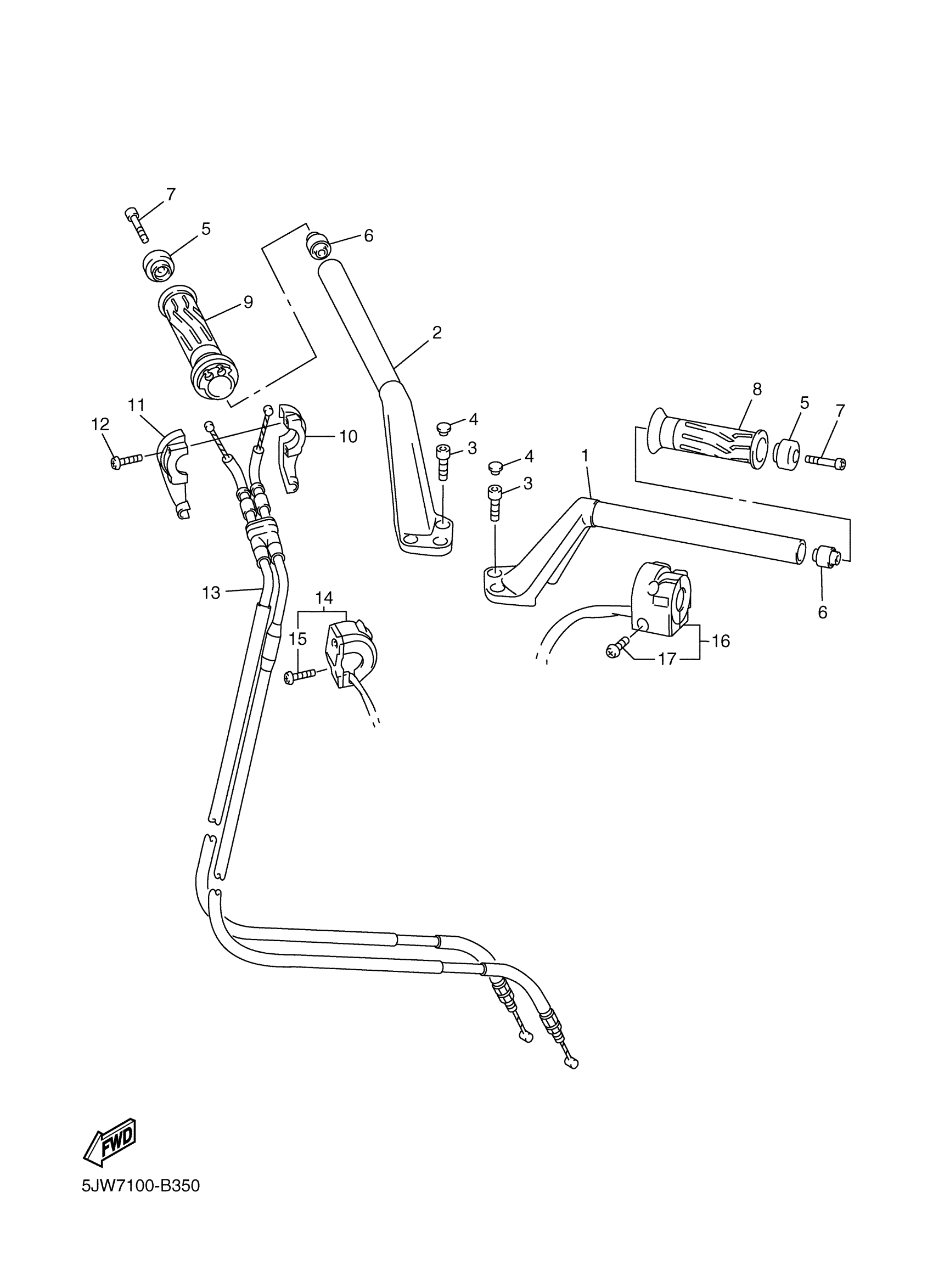 Yamaha FJR1300RC (FJR1300 CA) 5JW8 2003 STEERING HANDLE CABLE Diagram