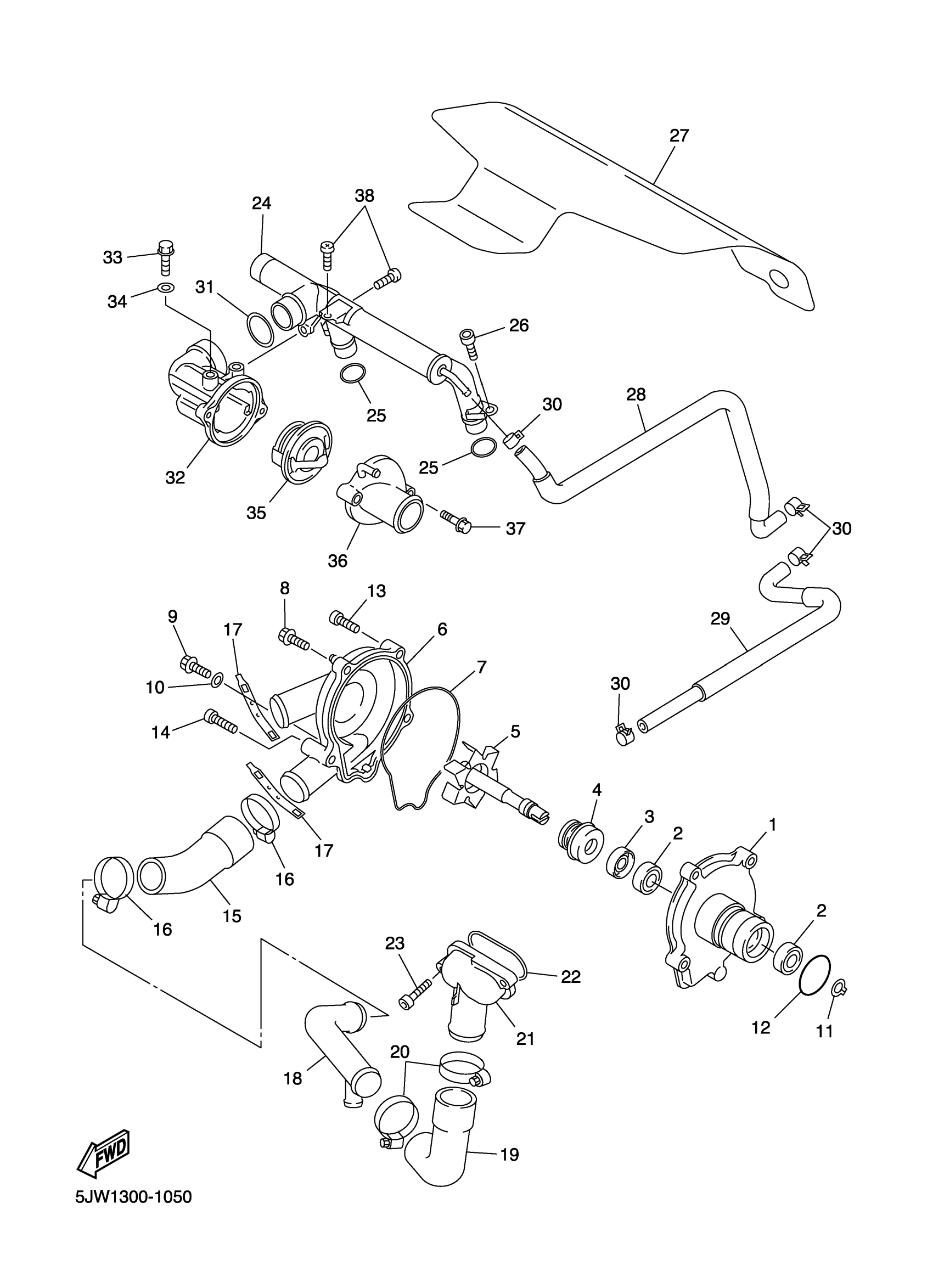 Yamaha FJR1300SC (FJR1300 CA) 5JWE 2004 WATER PUMP Diagram