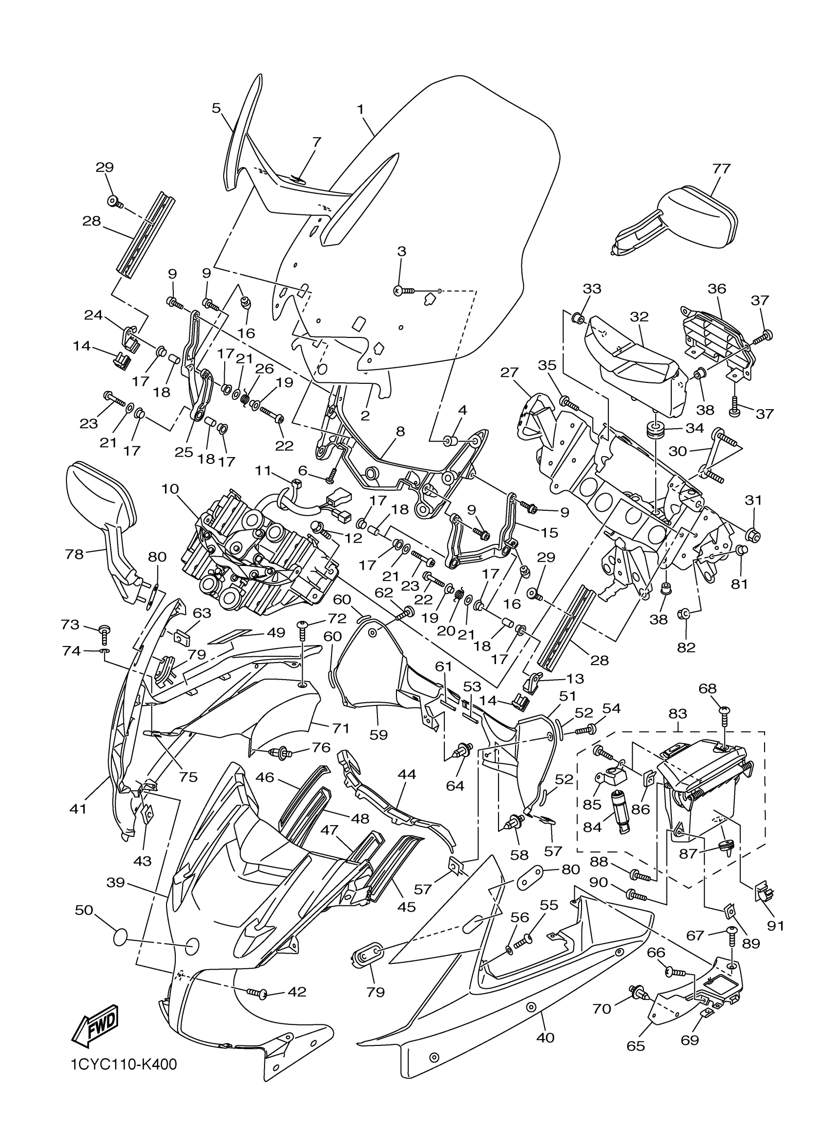 Yamaha FJR13ABL (FJR1300A) 1CYF 2012 COWLING 1 Diagram