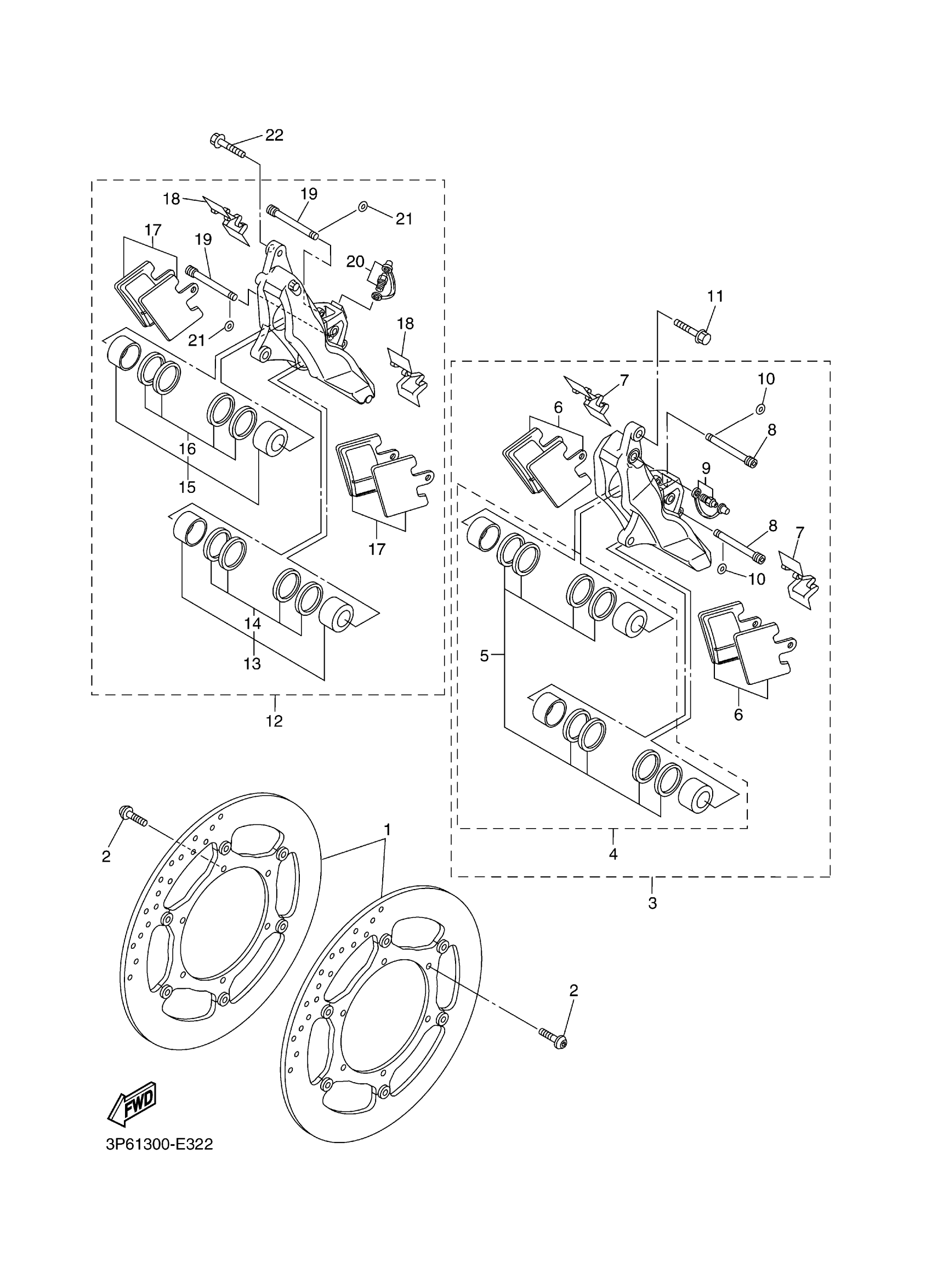 Yamaha FJR13ABL (FJR1300A) 1CYF 2012 FRONT BRAKE CALIPER Diagram