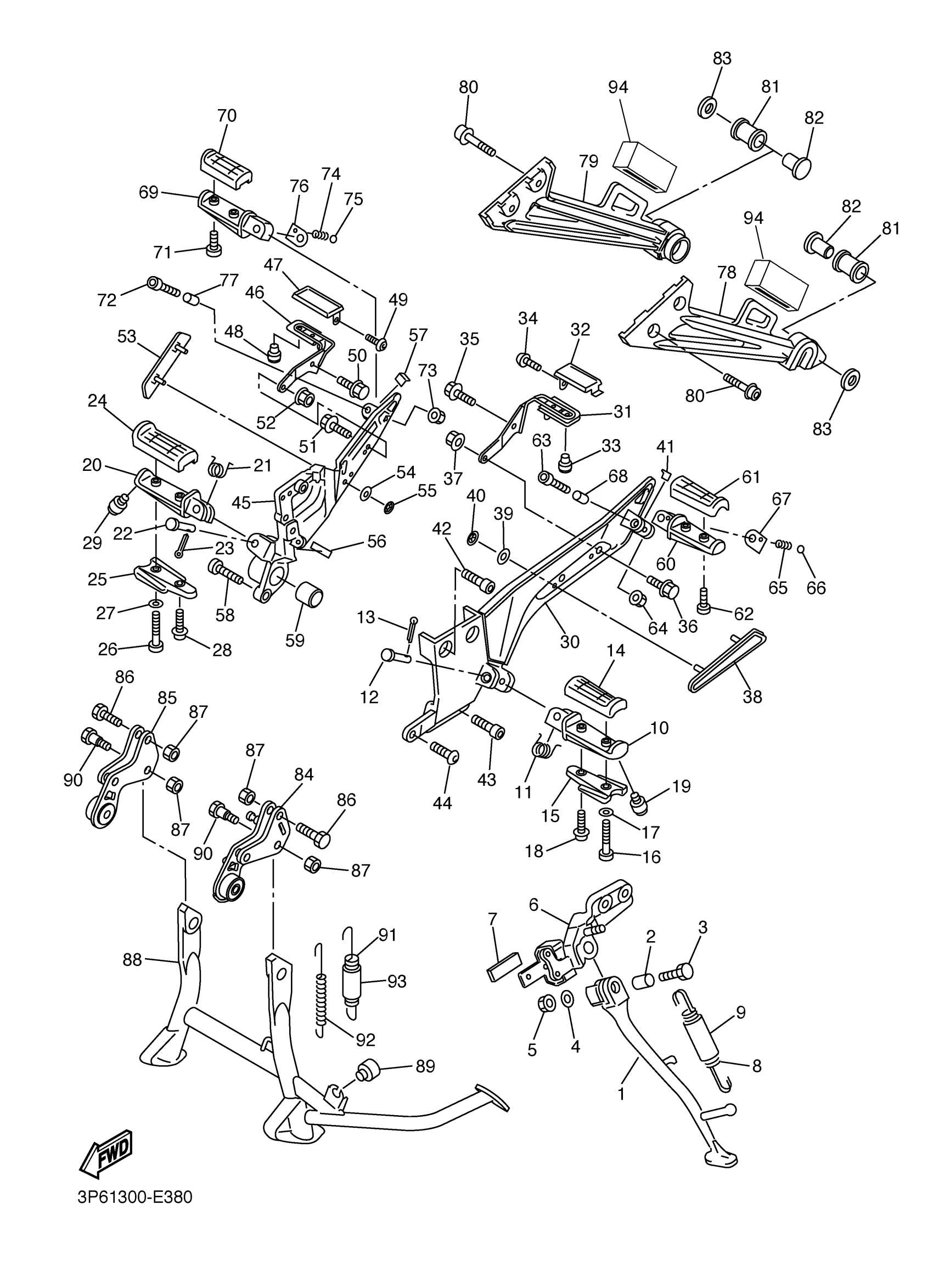 Yamaha FJR13AEWC (FJR1300AE CA) 2D2B 2007 STAND FOOTREST Diagram