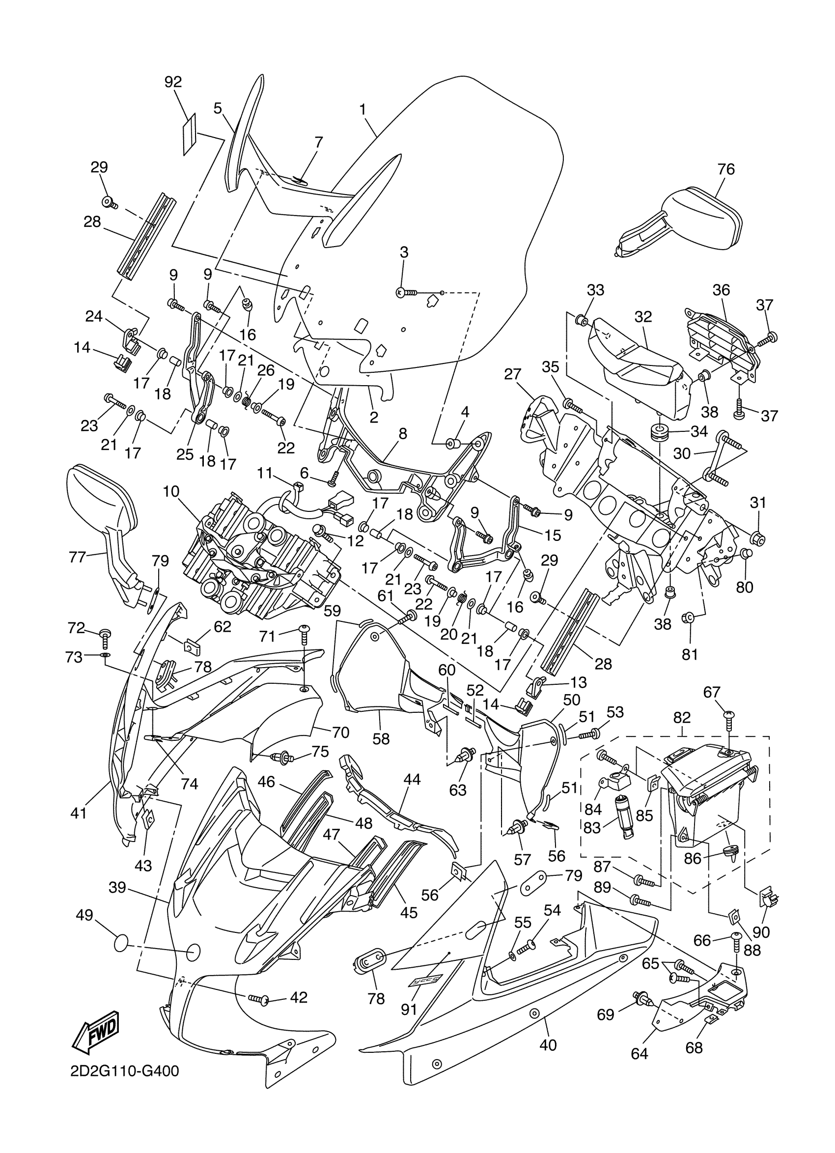 Yamaha FJR13AEXS (FJR 1300AE) 2D2G 2008 COWLING 1 Diagram