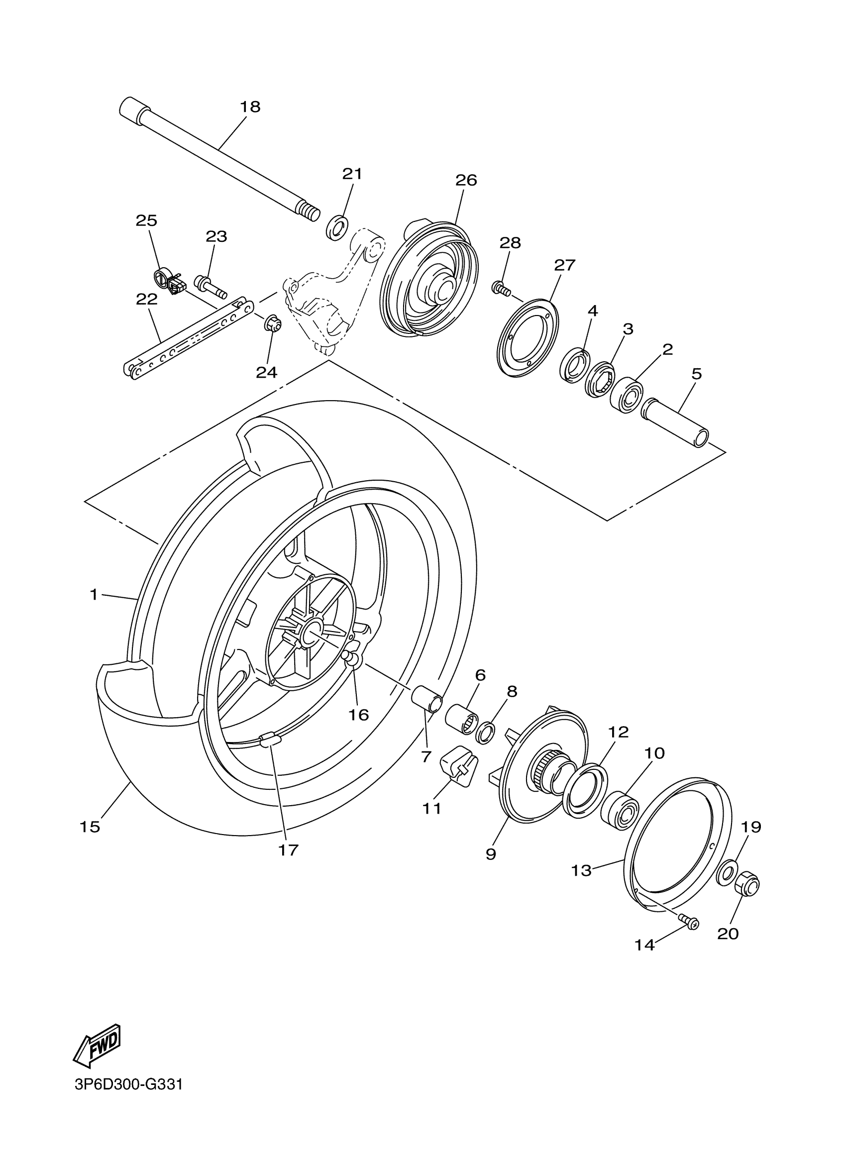Yamaha FJR13AEXS (FJR 1300AE) 2D2G 2008 REAR WHEEL Diagram