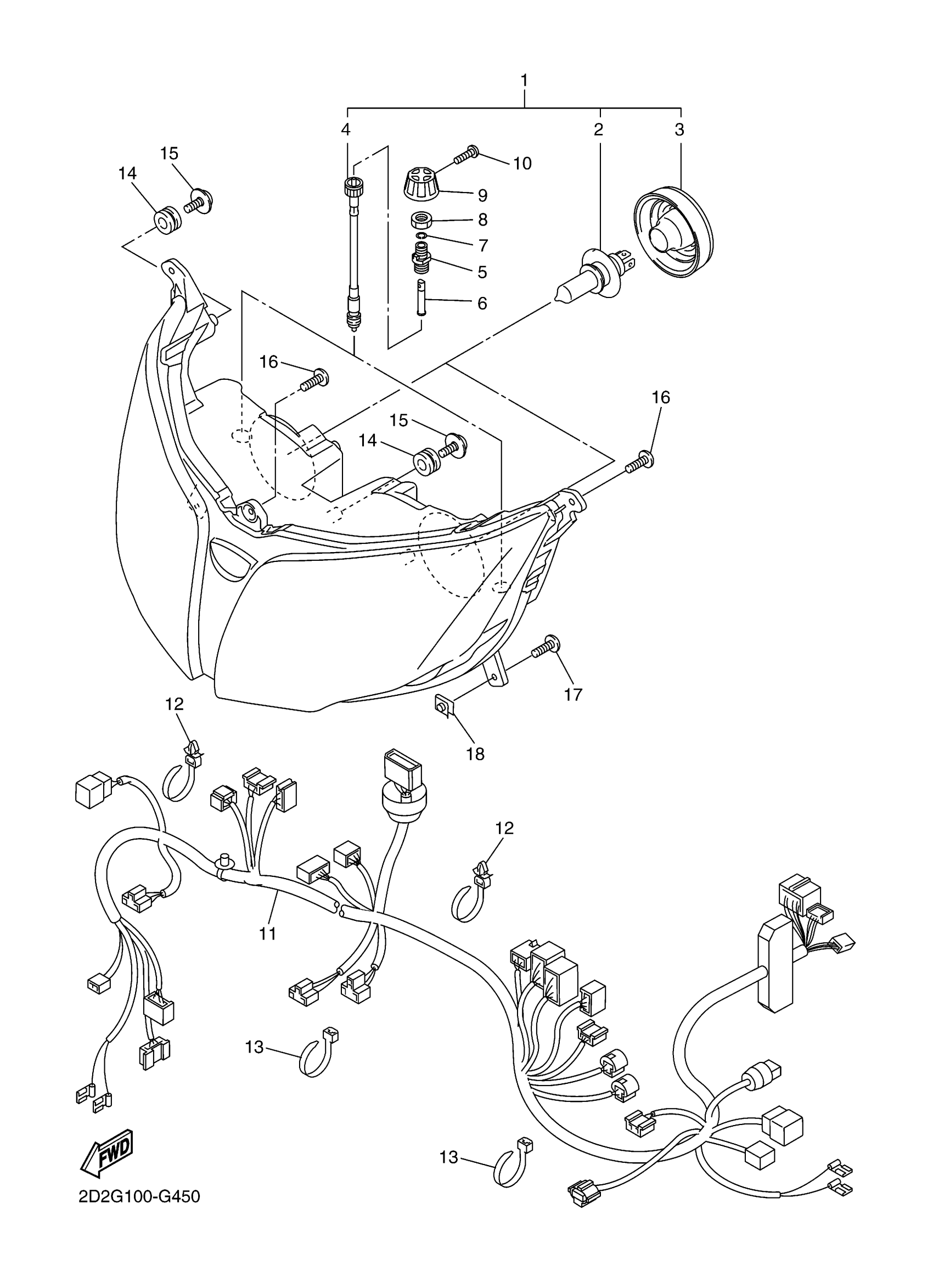 Yamaha FJR13AEYG (FJR1300AE) 2D2N 2009 HEADLIGHT Diagram