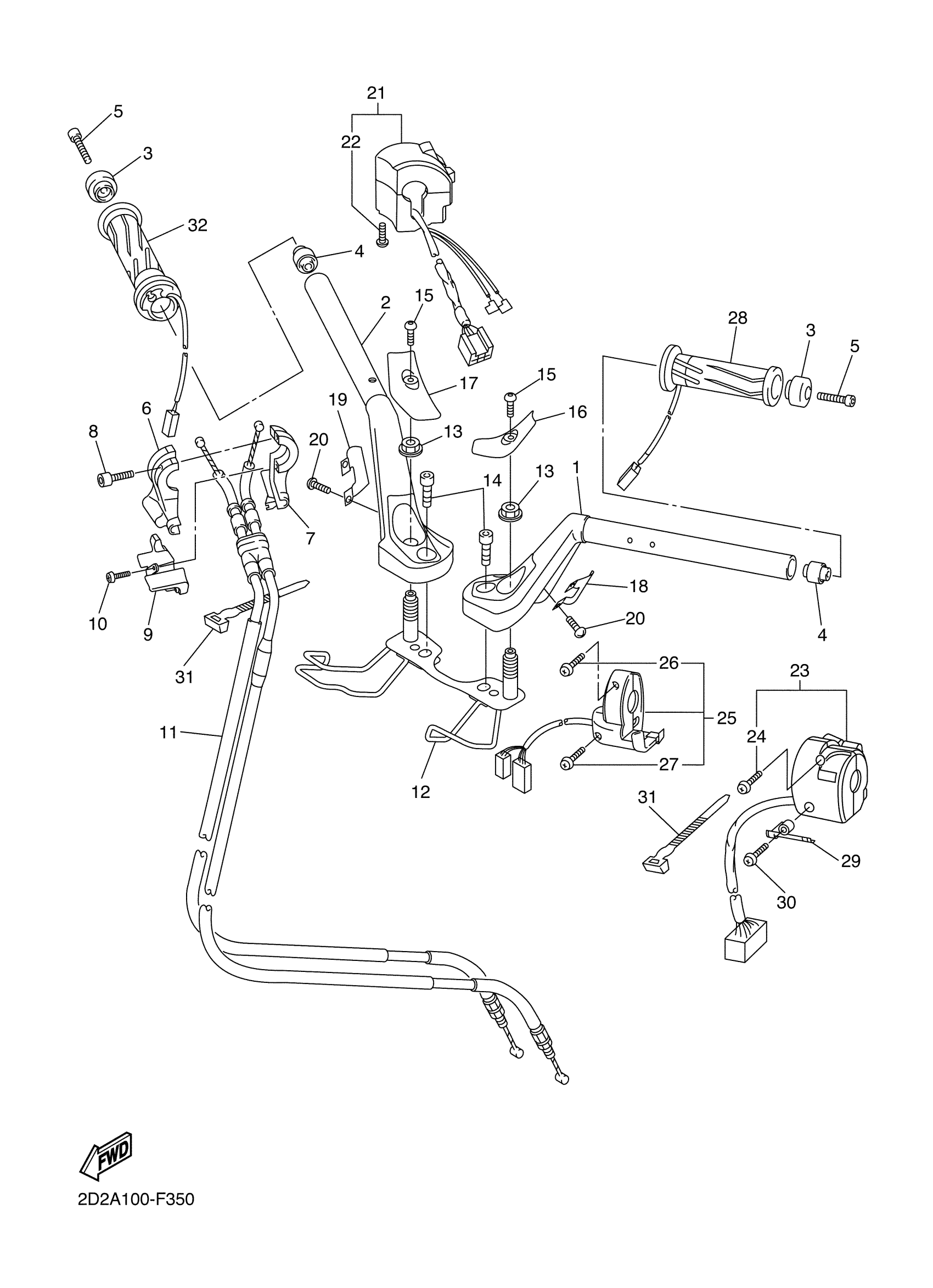 Yamaha FJR13AEYG (FJR1300AE) 2D2N 2009 STEERING HANDLE CABLE Diagram