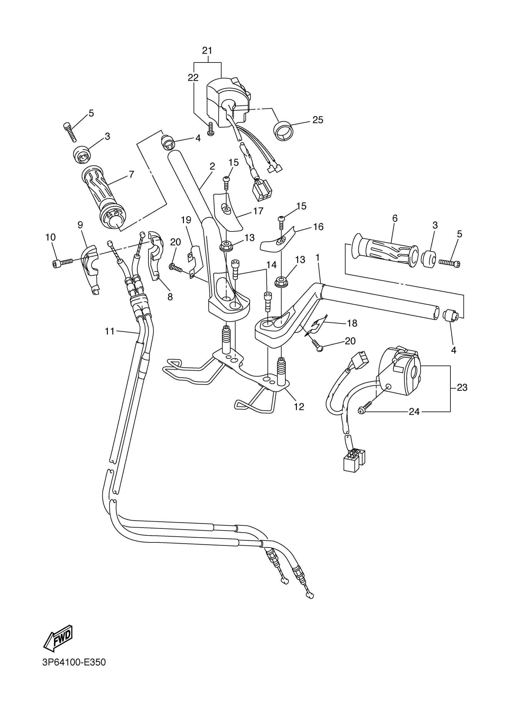 Yamaha FJR13AVC (FJR13ABS CA) 3P65 2006 STEERING HANDLE CABLE Diagram